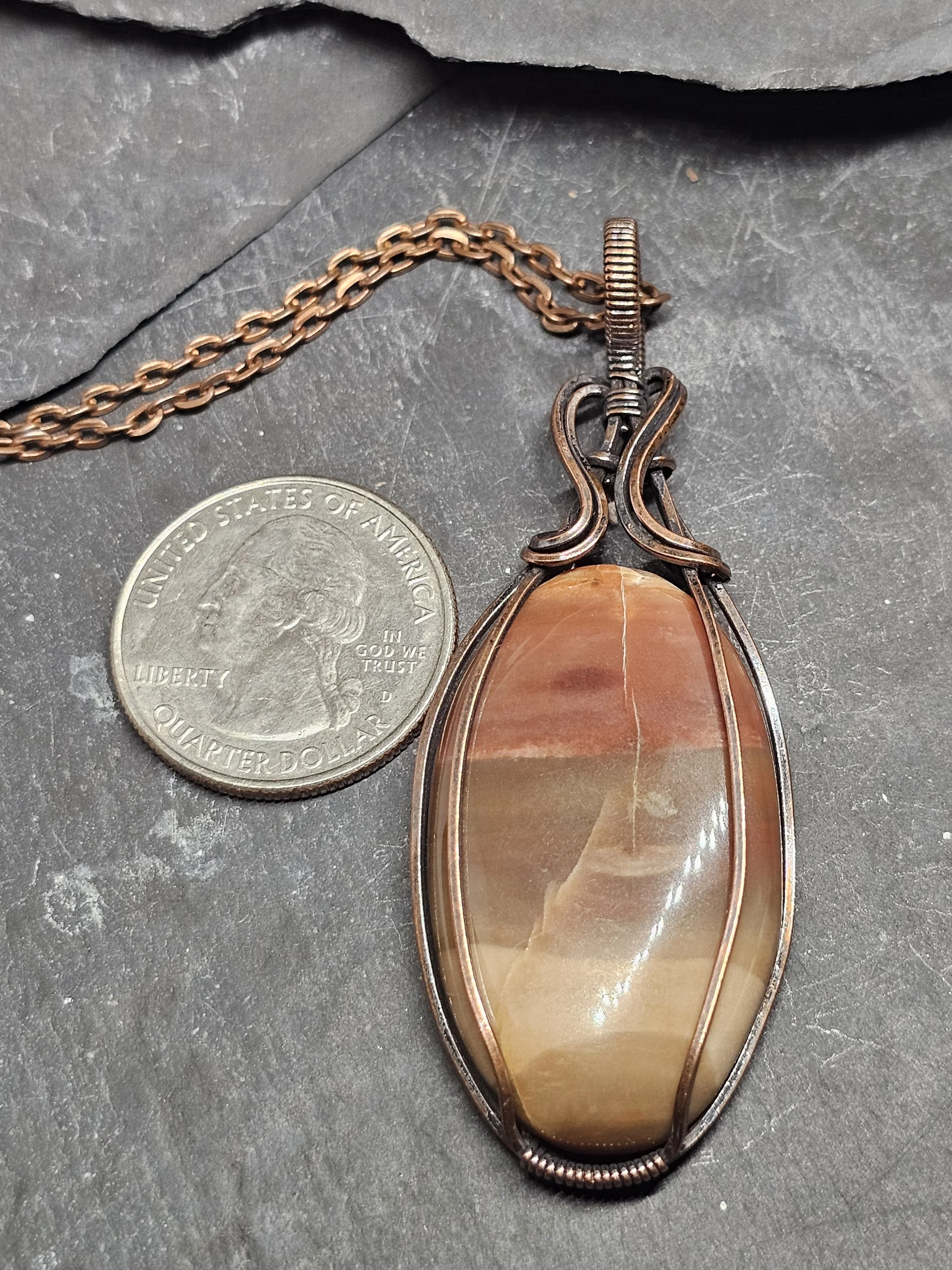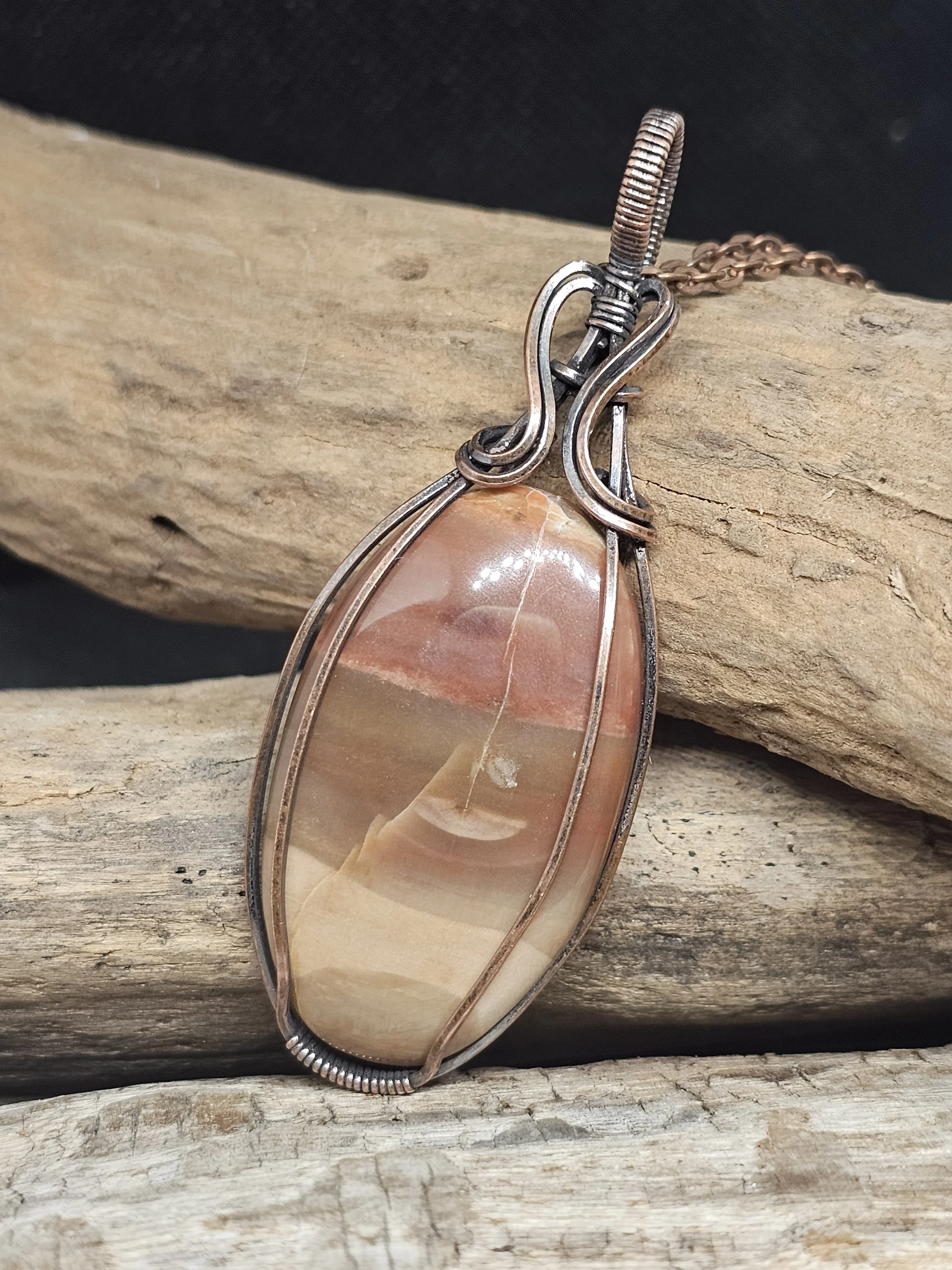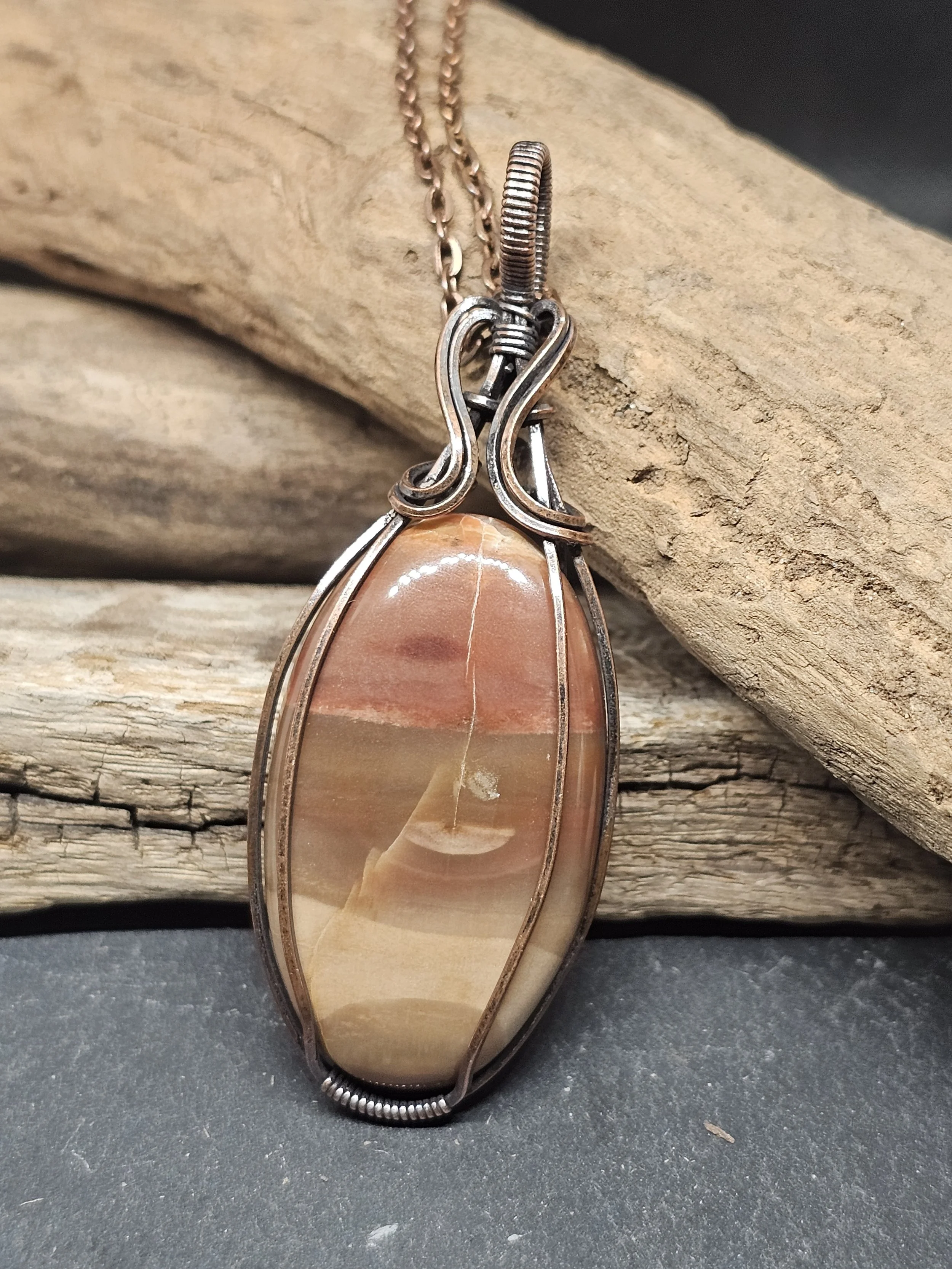 Discover the captivating beauty of the Noreen Jasper Copper Pendant, handcrafted with care by Sarah K Peterson. This pendant features a stunning Noreen Jasper stone, known for its earthy tones and intricate patterns that evoke the landscapes of the Southwest. Noreen Jasper is prized for its grounding properties, helping to promote balance and emotional stability. Set in warm copper wire, which enhances the stone’s natural energies and adds a rustic charm, this pendant is not only a unique accessory but also a meaningful piece to wear every day. Perfect for those who appreciate both natural beauty and the healing qualities of gemstones.