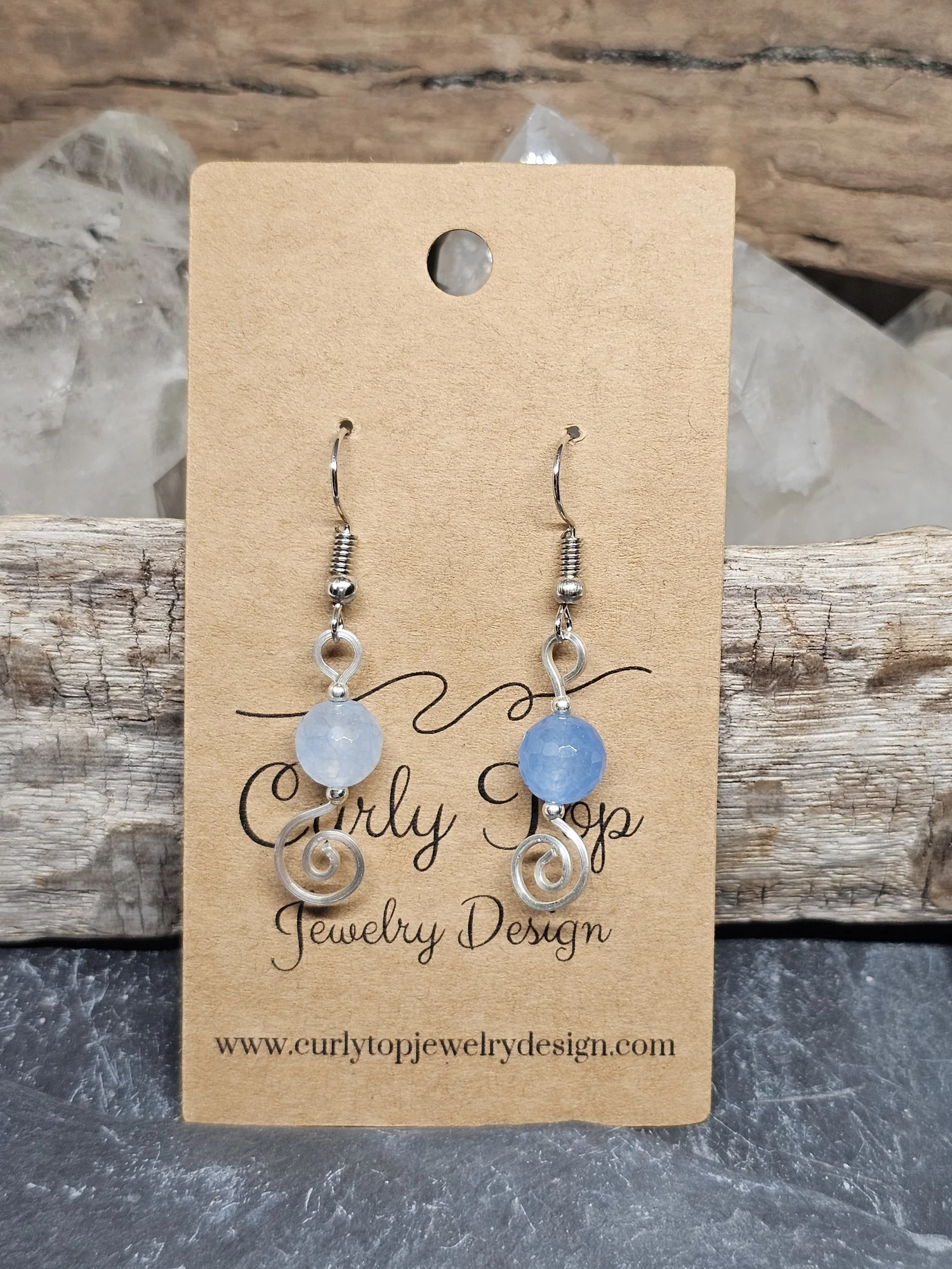 Blue dyed agate earrings, beautifully made with argentium silver wire, are a striking addition to any jewelry collection. The pale blue color resembles a calm ocean, while the handmade spiral design adds a playful elegance. Each pair is unique, highlighting the stone's natural differences, and the argentium silver offers a lasting shine that resists tarnishing. Ideal for casual outings or special events, these earrings make a versatile statement piece that garners compliments and enhances any outfit.