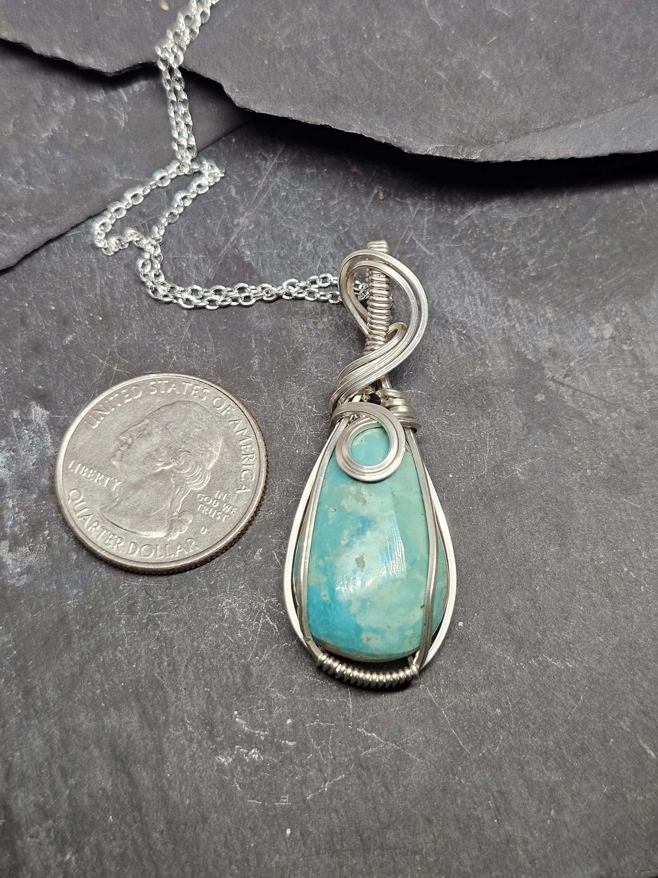 Discover the natural beauty of Arizona with our handcrafted pendant featuring genuine Turquoise, carefully mined from the heart of the Southwest. Set in radiant Argentium Silver, this piece offers unmatched durability and a brilliant shine that compliments the vibrant blue-green stone. Each pendant is a unique treasure, combining artistry and authenticity to bring a touch of the desert’s charm into your everyday style. Wear a piece of Arizona’s spirit—durable, beautiful, and unmistakably you.