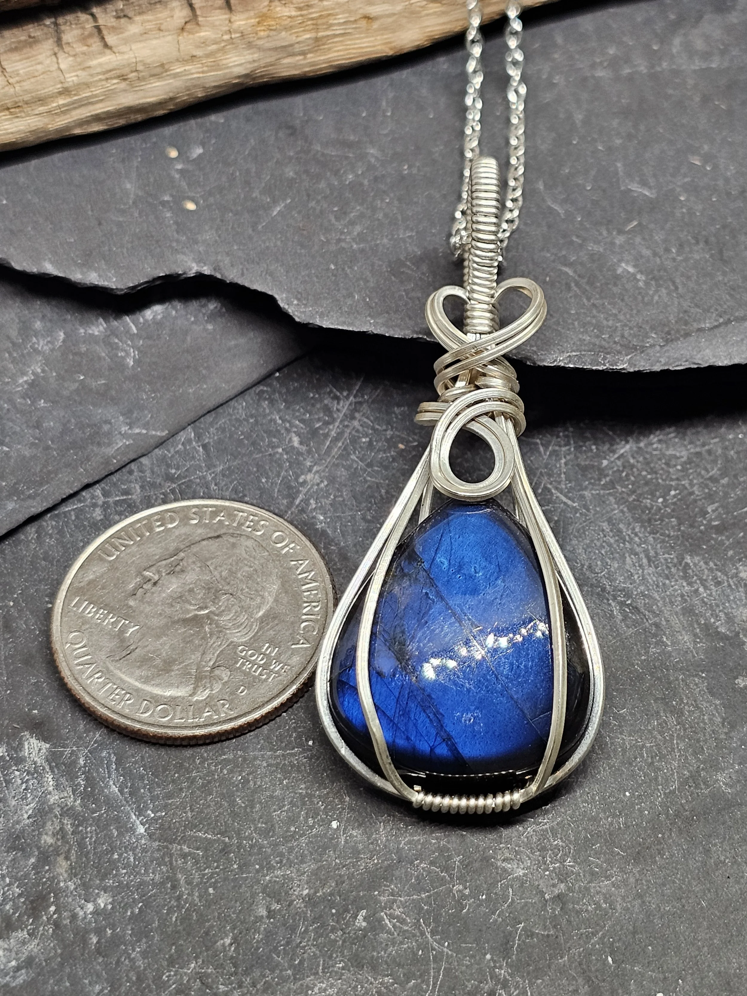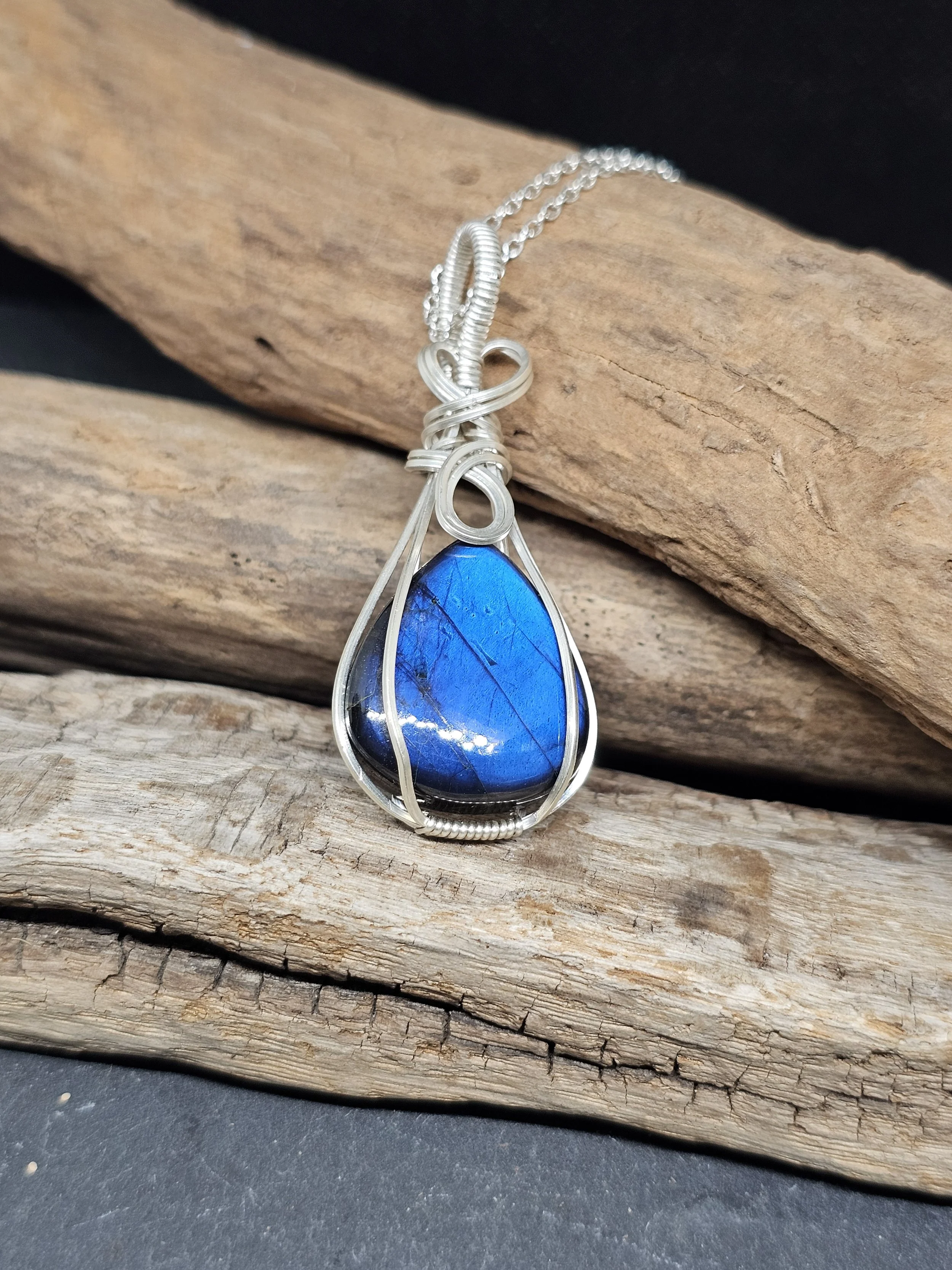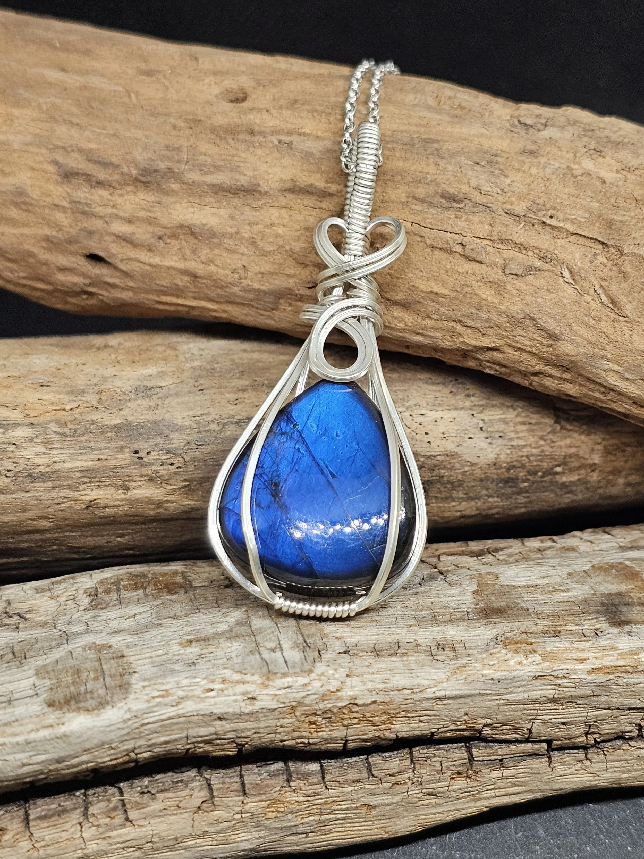 Discover the mesmerizing beauty of our Blue Labradorite pendant, expertly handcrafted with shimmering Argentium silver wire. Known as the stone of transformation, Labradorite is celebrated for its enchanting play of colors and its legendary ability to awaken intuition and protect the wearer from negative energies. This pendant not only elevates your style but also carries a powerful connection to ancient wisdom and spiritual insight. Add a touch of magic and elegance to your collection with this one-of-a-kind, artisan-crafted treasure.