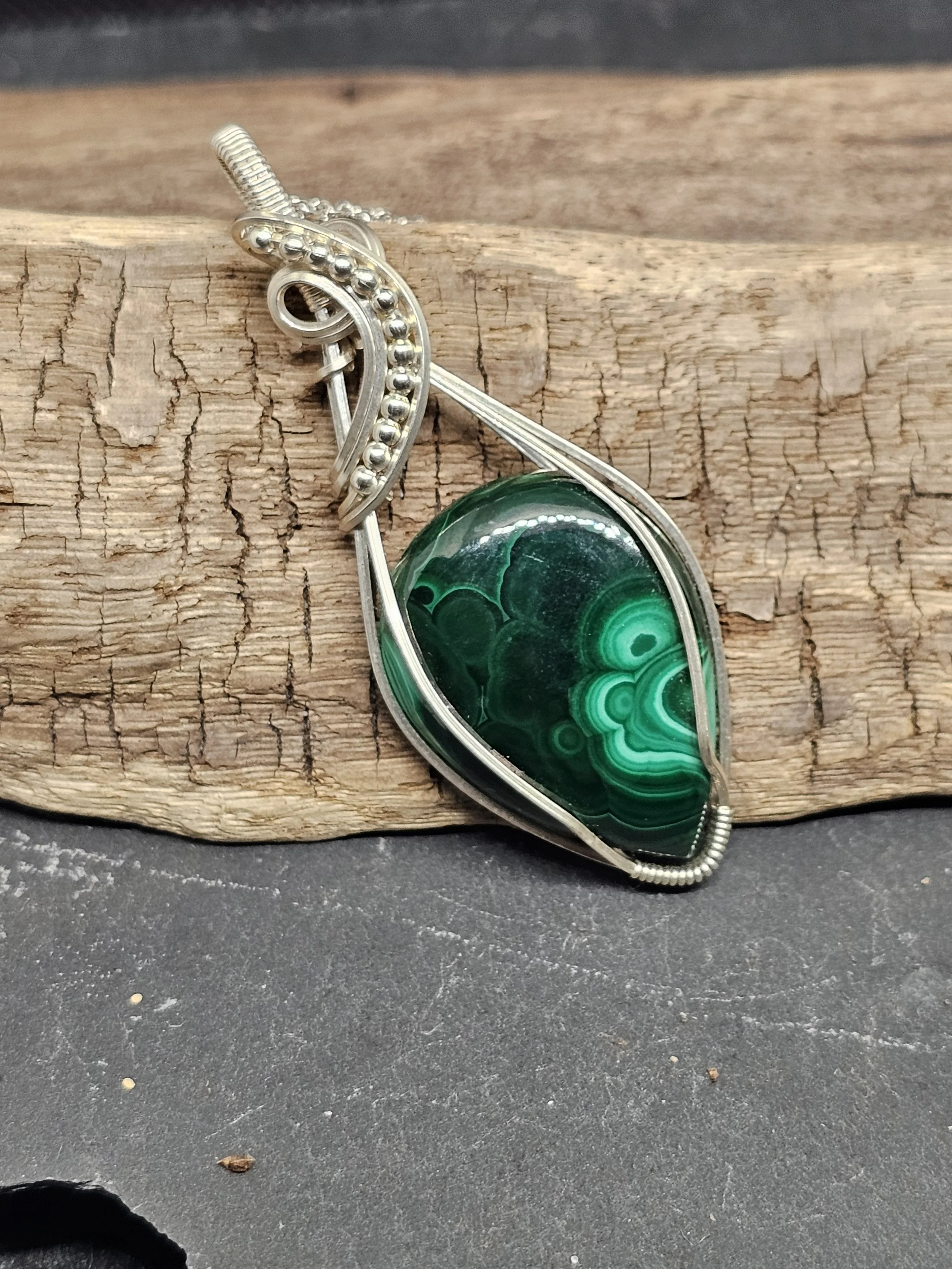 Enhance your collection with the Malachite Argentium Silver Pendant with Beads. Featuring vibrant green malachite and tarnish-resistant Argentium silver, this lightweight handmade piece combines beauty and durability. The added beads create texture and style, perfect for any look or occasion. A meaningful, elegant gift for yourself or a loved one.