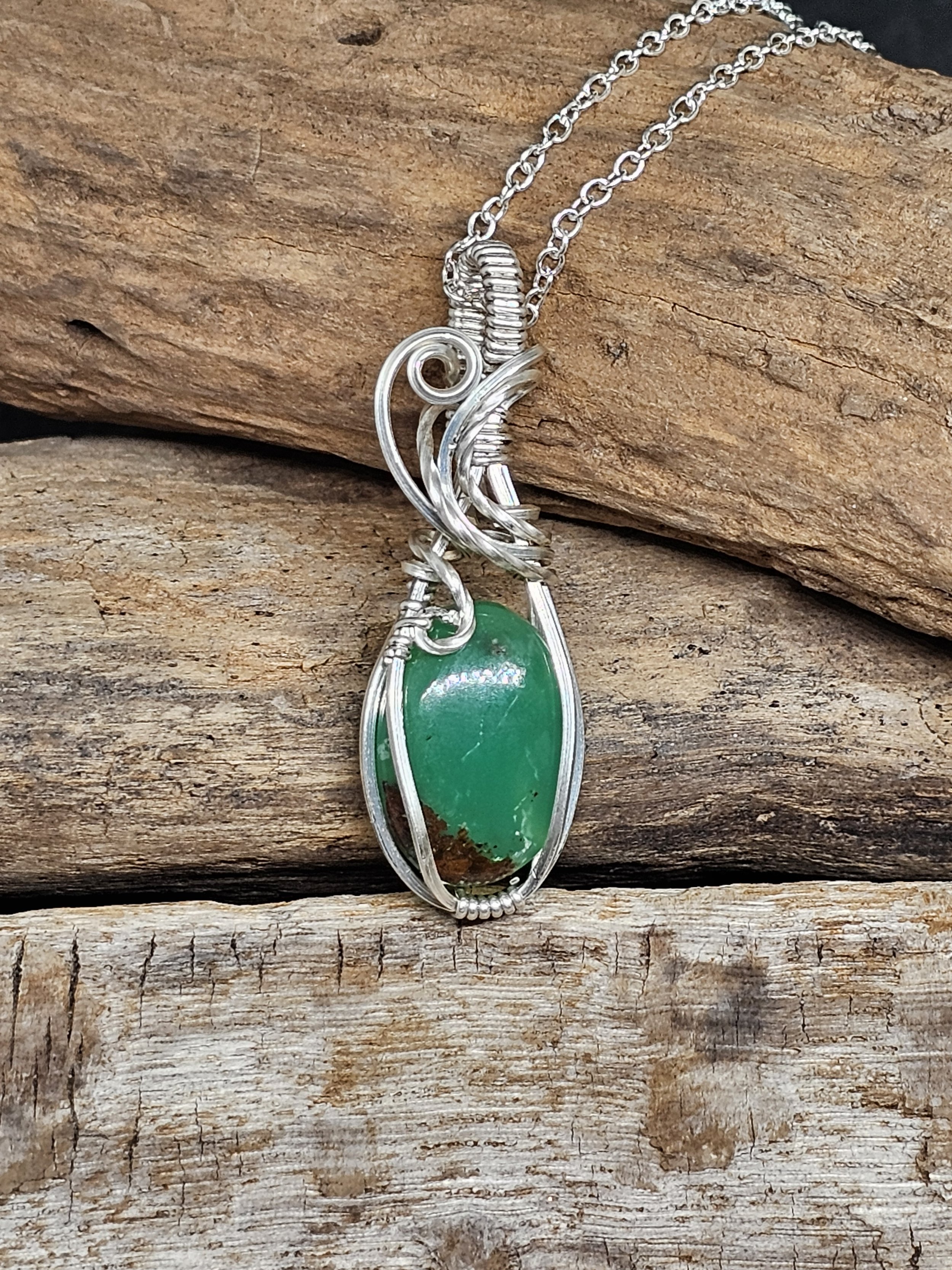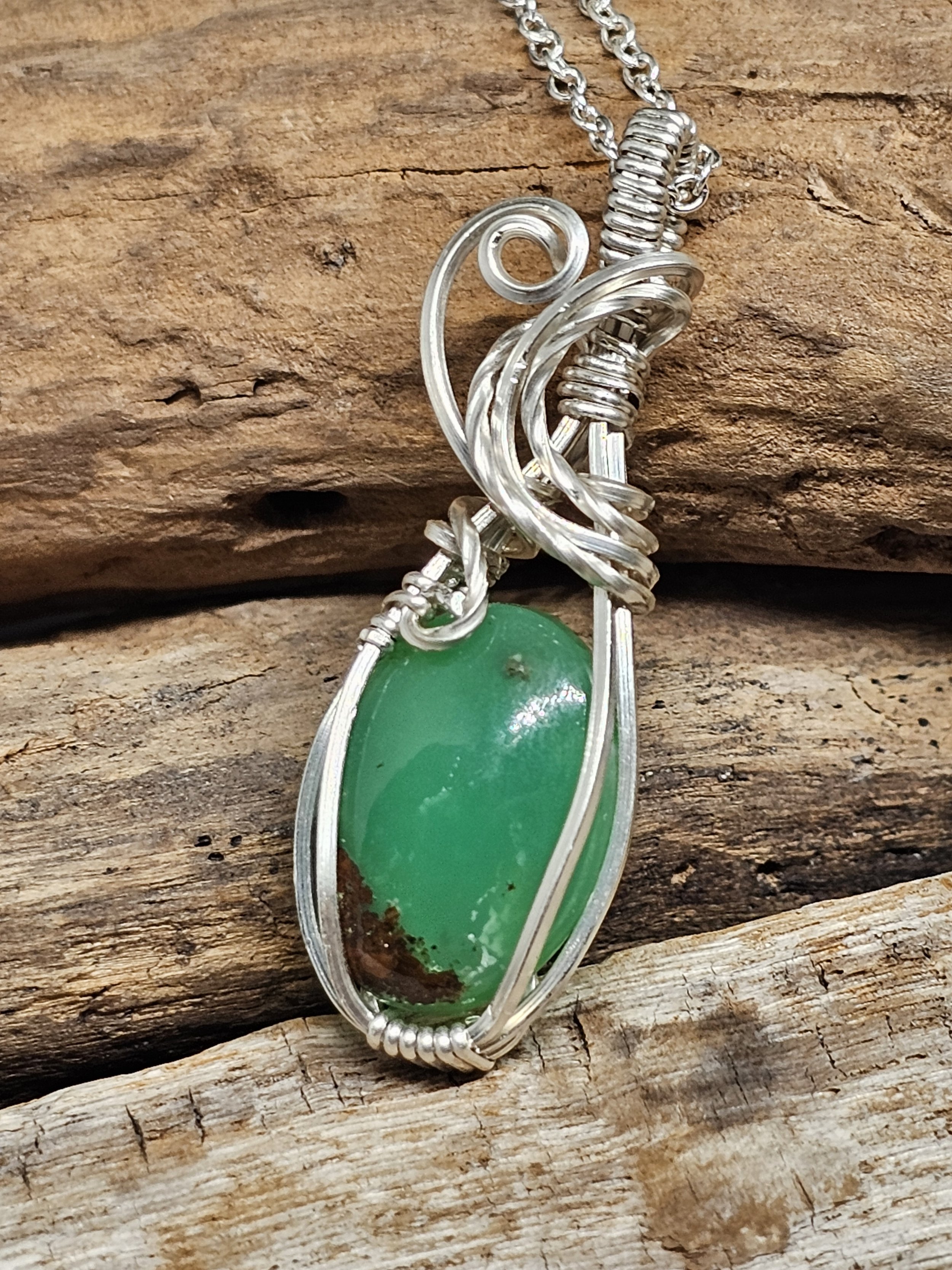 Discover the enchanting beauty of our Chrysoprase Argentium Silver Pendant, a true masterpiece handcrafted just for you. This vibrant green gemstone, known for its calming and healing properties, is expertly wire-wrapped in shimmering Argentium silver, a premium-grade metal that resists tarnish and shines brighter longer than traditional sterling silver. Each pendant is a unique work of art, reflecting Sarah K Peterson’s dedication to quality and detail. Whether you're treating yourself or searching for a meaningful gift, this pendant effortlessly blends natural elegance with everyday wearability. Elevate your jewelry collection today with a piece that’s as enduring and unique as you are.