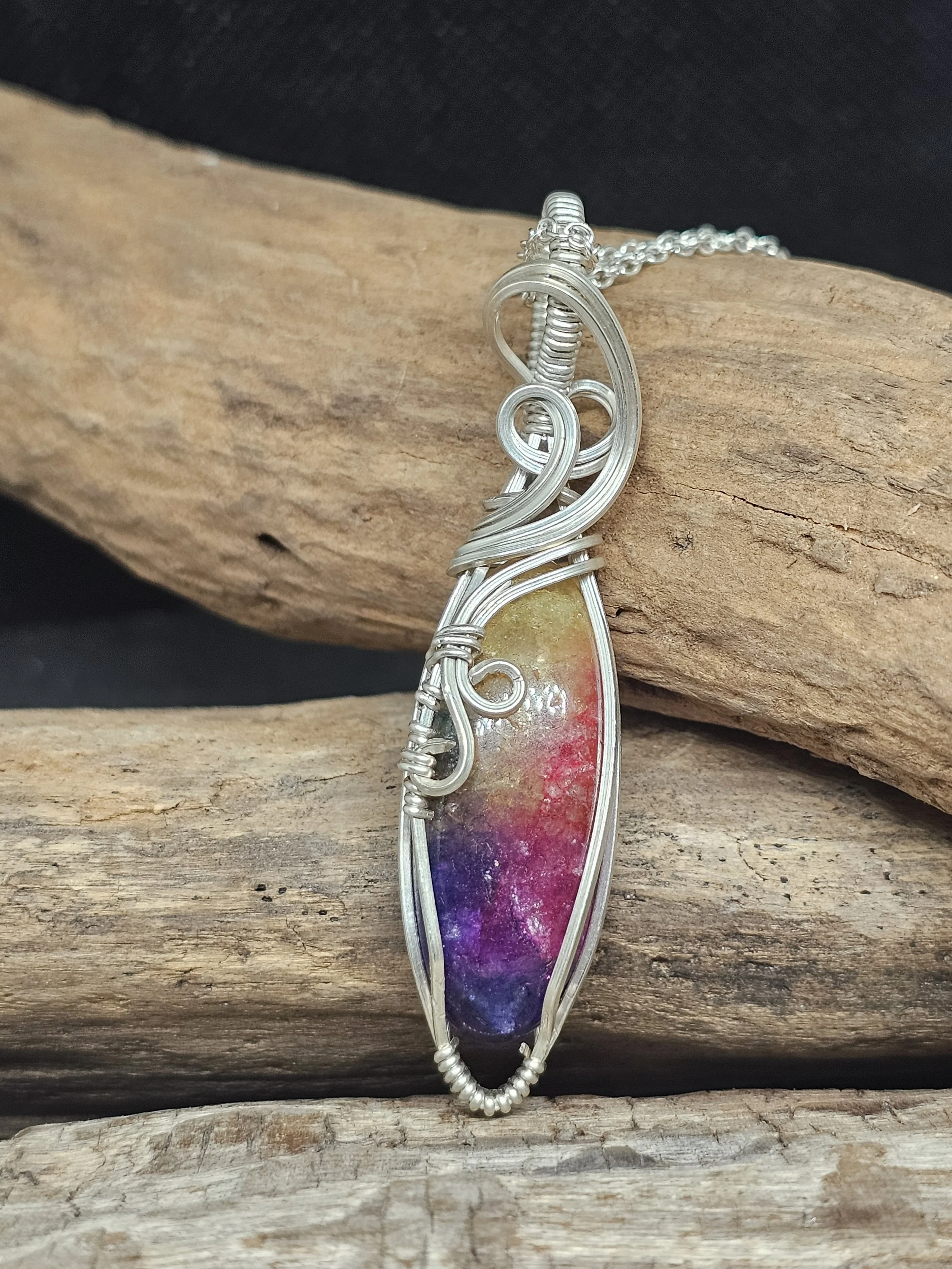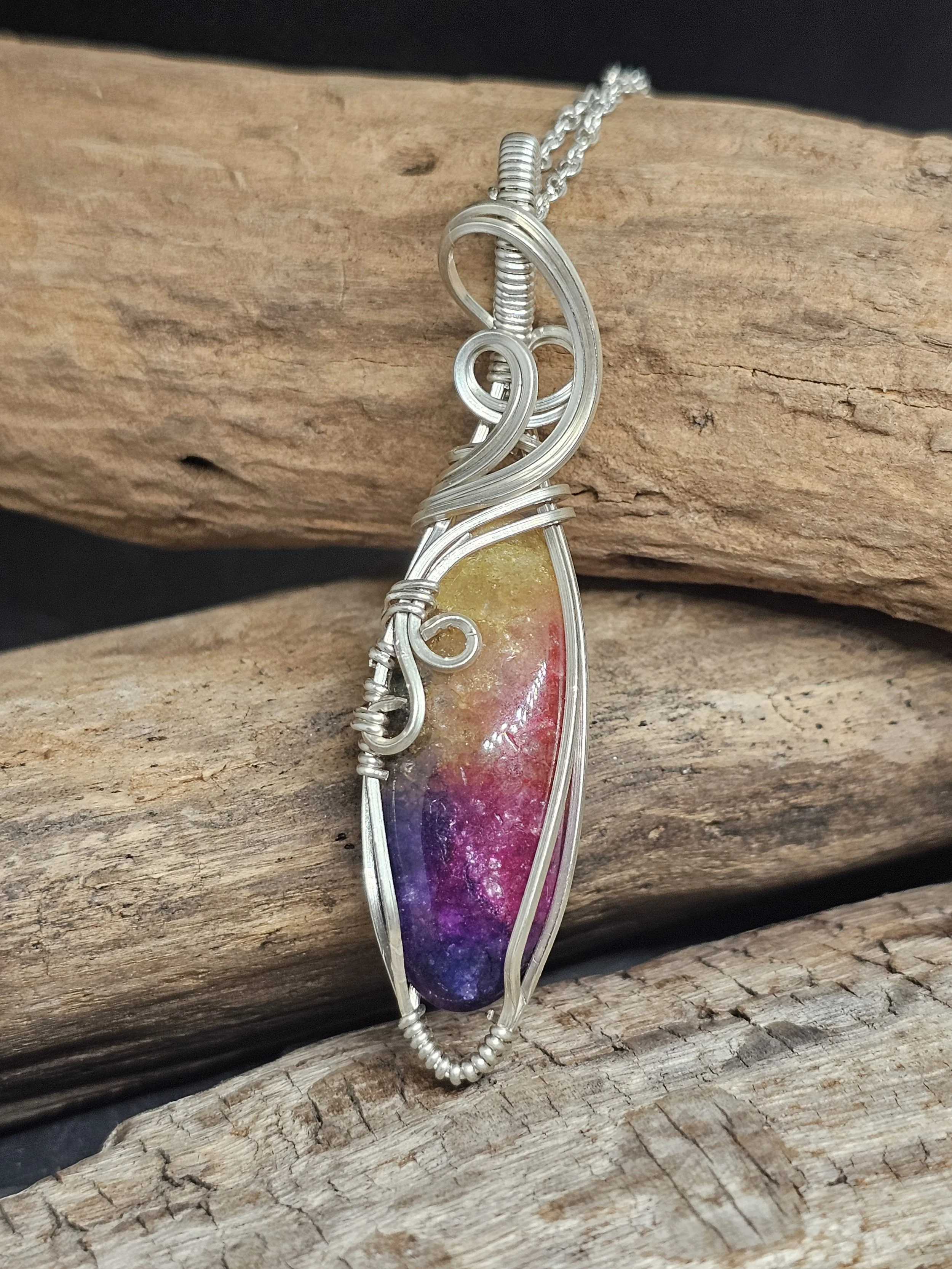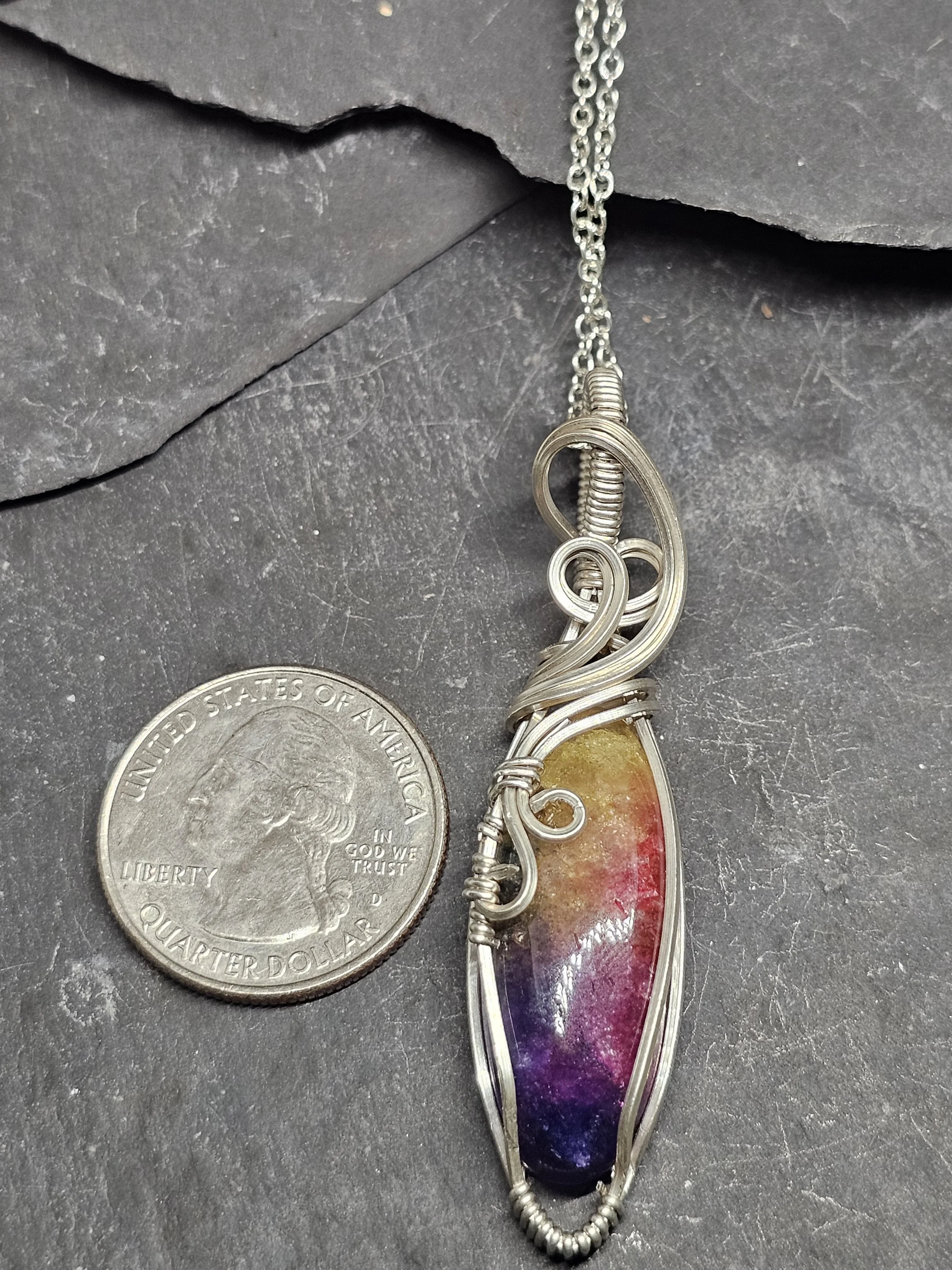 Stone Care: To keep your dyed rainbow quartz looking its best, avoid prolonged exposure to direct sunlight and harsh chemicals, which can fade the colors. Clean gently with a soft, damp cloth and avoid ultrasonic cleaners. Store your pendant separately in a soft pouch to prevent scratches and preserve its brilliant shine.
