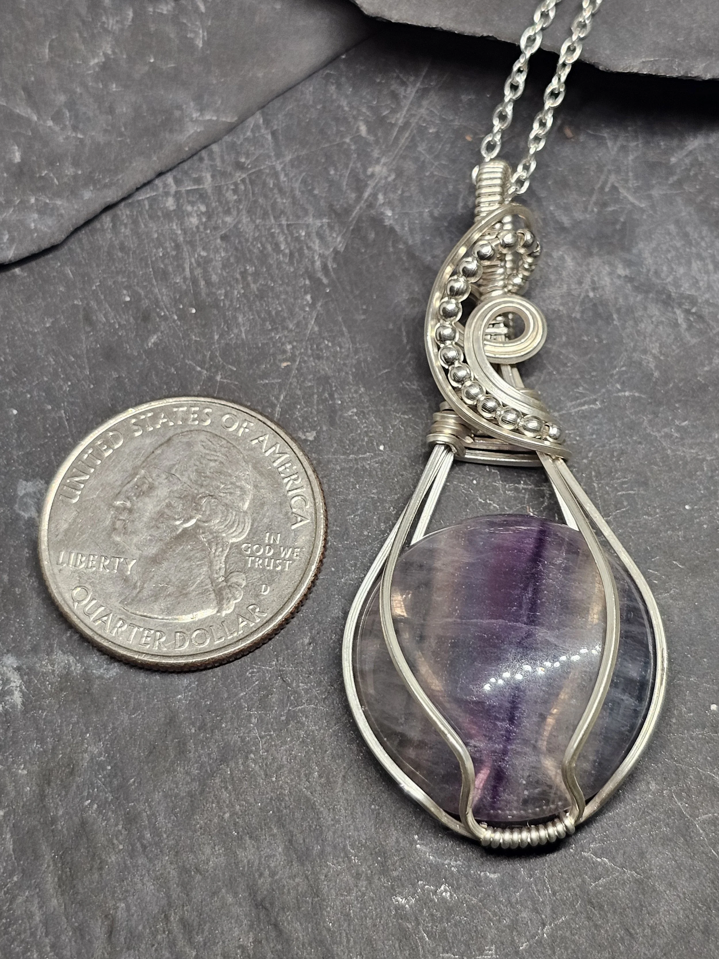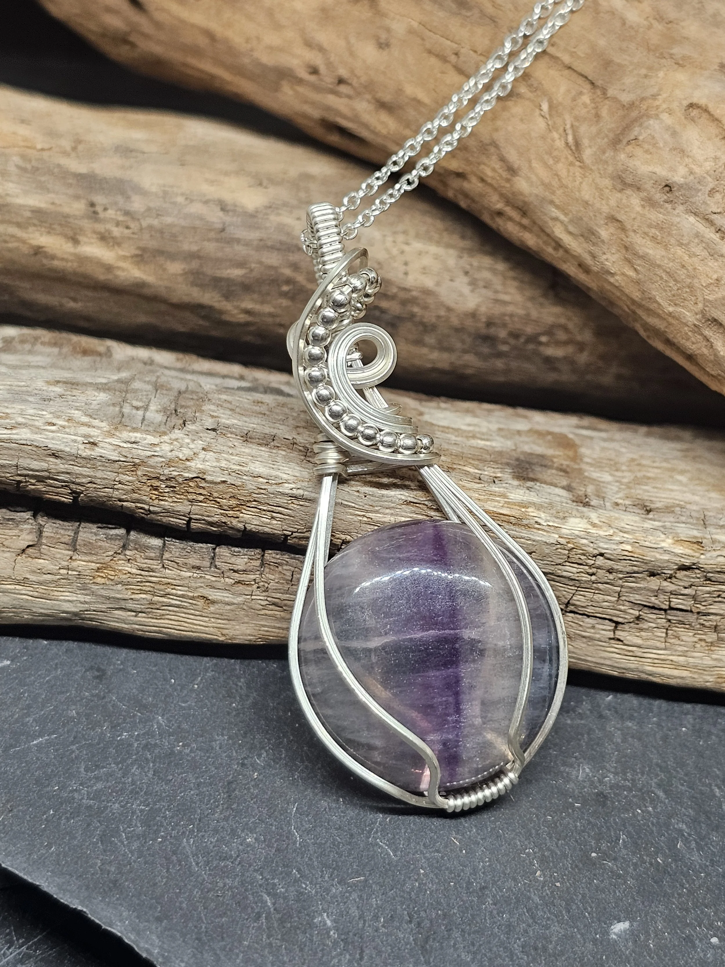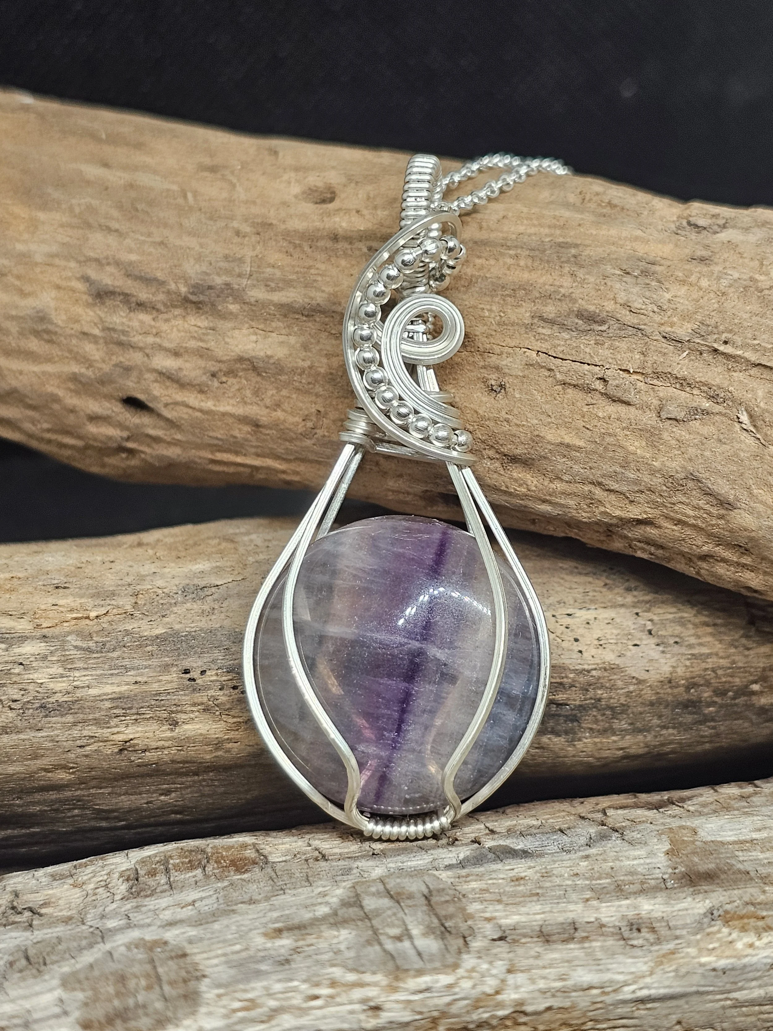 This stunning Fluorite pendant, crafted with shining Argentium Silver and delicate accent beads, brings a touch of elegance and positive energy to any outfit. Known for its vibrant colors and striking banding, Fluorite is often called the "Genius Stone" for its reputed ability to enhance mental clarity and focus. Rich in calming blues, greens, and purples, this gemstone is believed to help reduce stress and promote balance. Paired with the tarnish-resistant Argentium Silver, this pendant is as durable as it is beautiful—perfect for everyday wear or as a thoughtful gift.