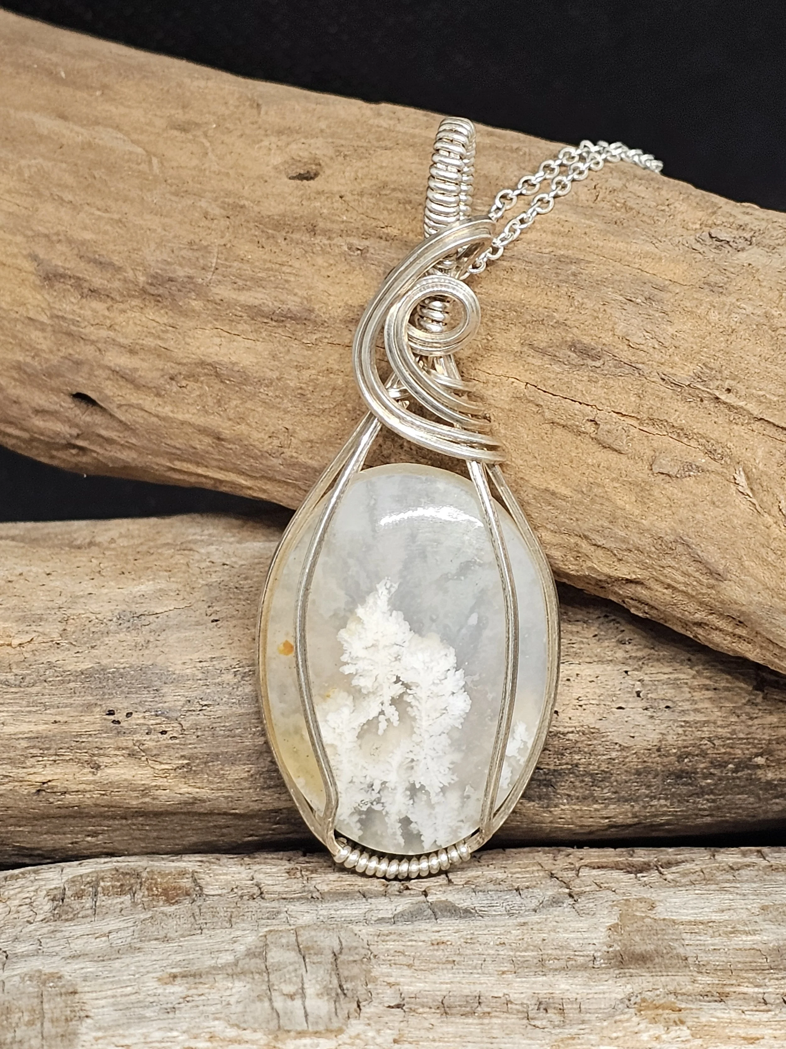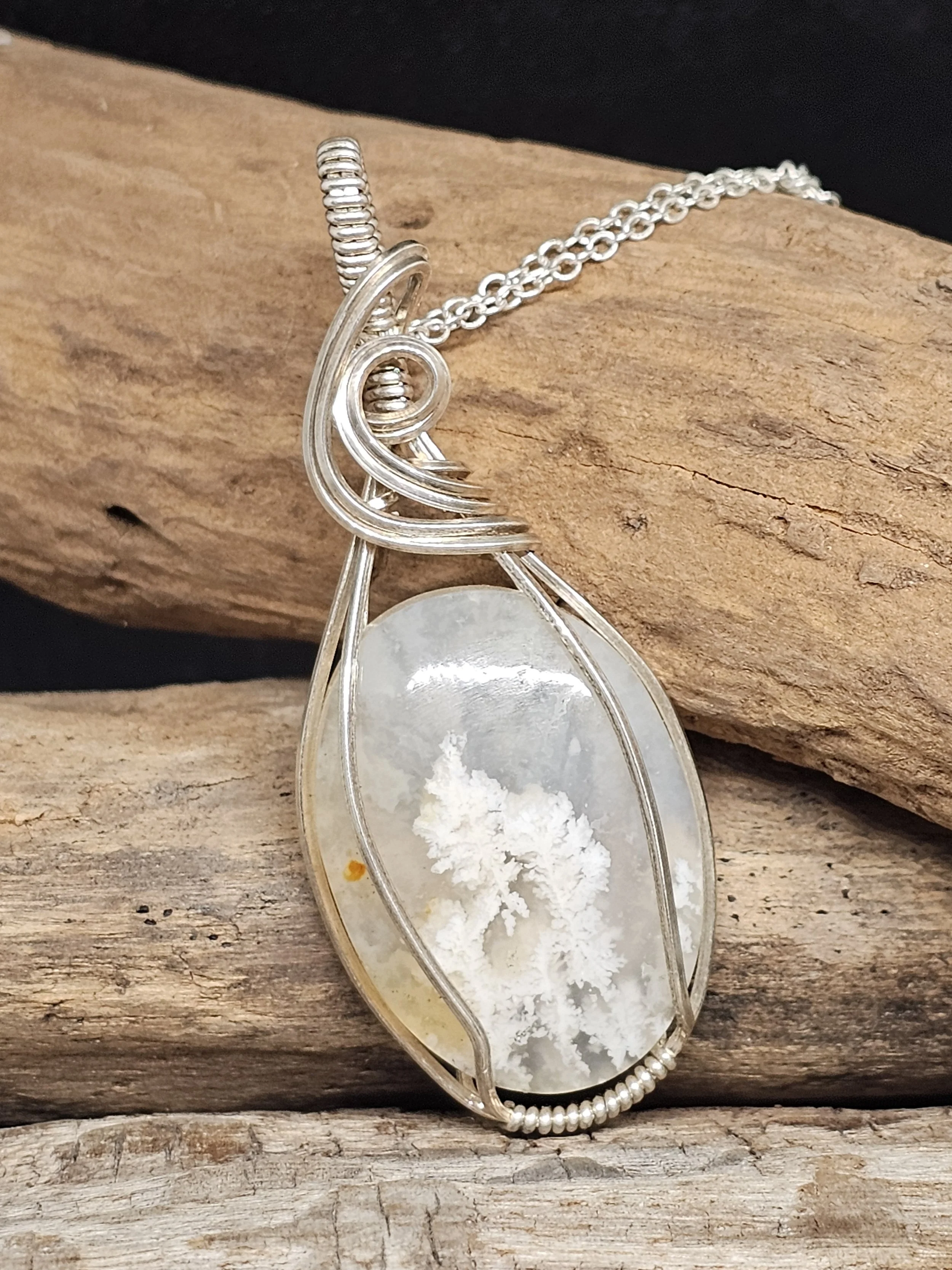 This stunning pendant features a captivating plume agate, carefully mined from the heart of Oregon's rich landscapes. Each stone showcases unique wisps and feather-like patterns in warm earth tones, making every piece one-of-a-kind. Set in gleaming Argentium silver, known for its lasting shine and tarnish resistance, this pendant offers both natural beauty and durable elegance. Perfect for adding a touch of organic artistry to any outfit.