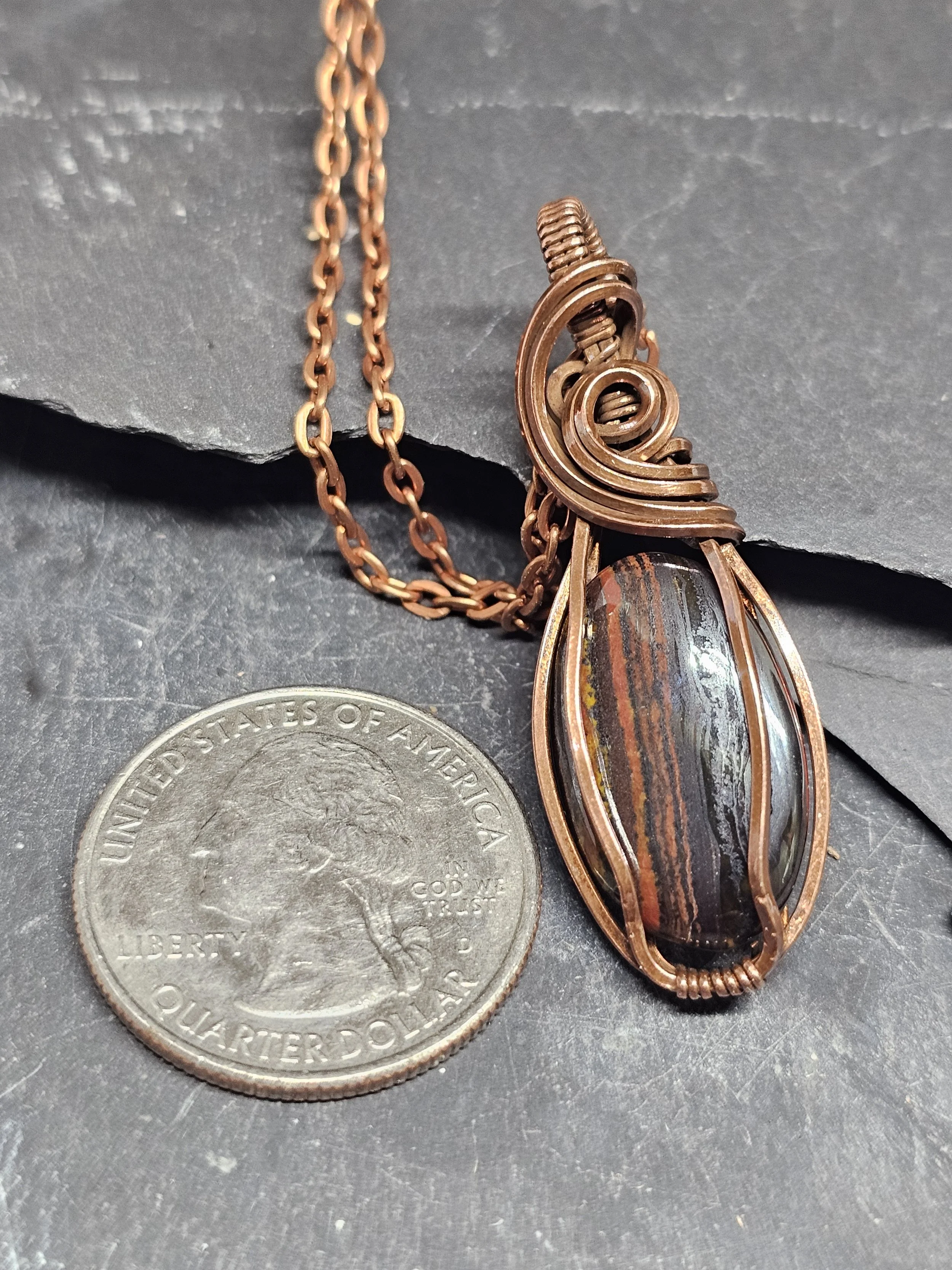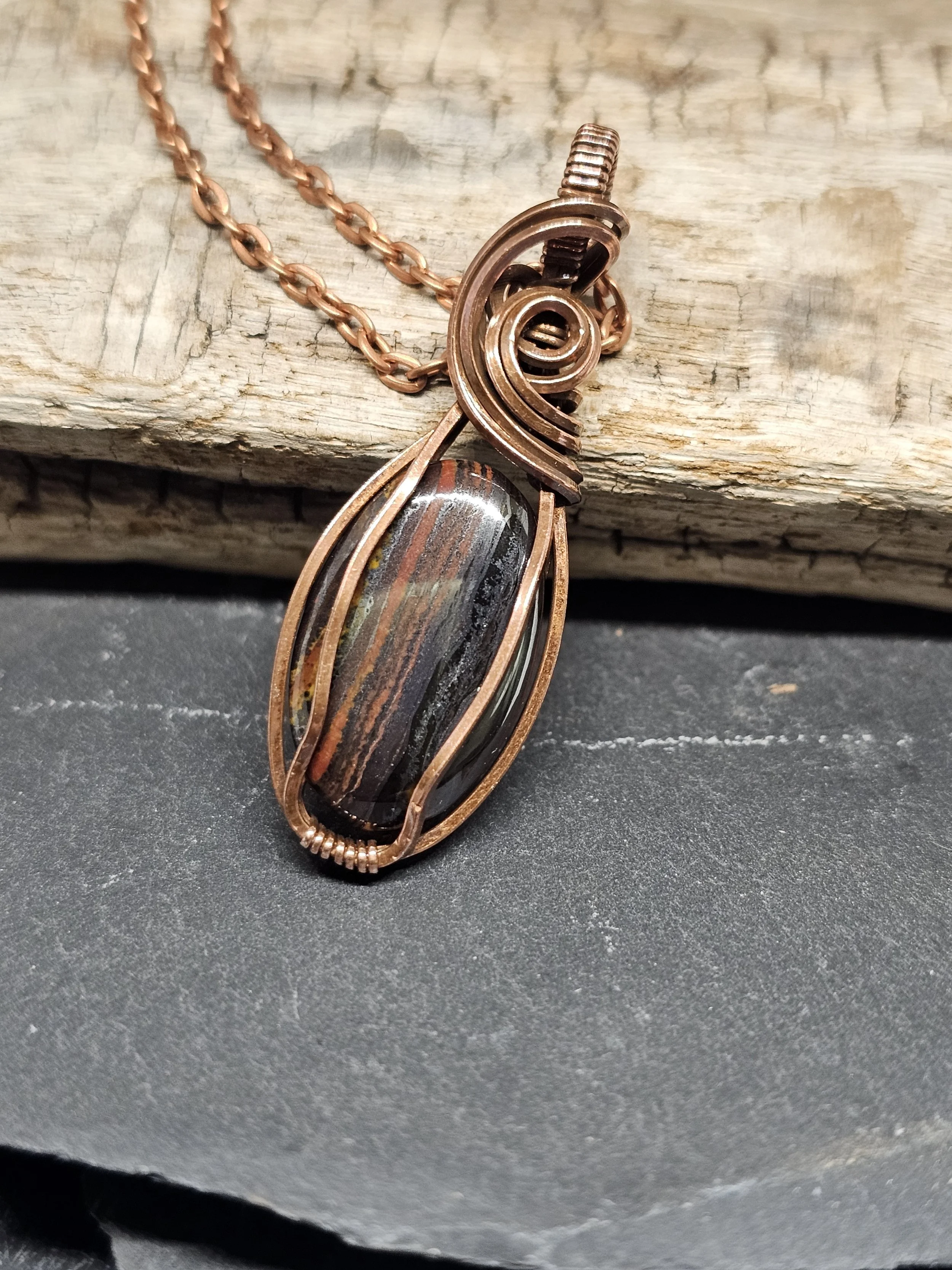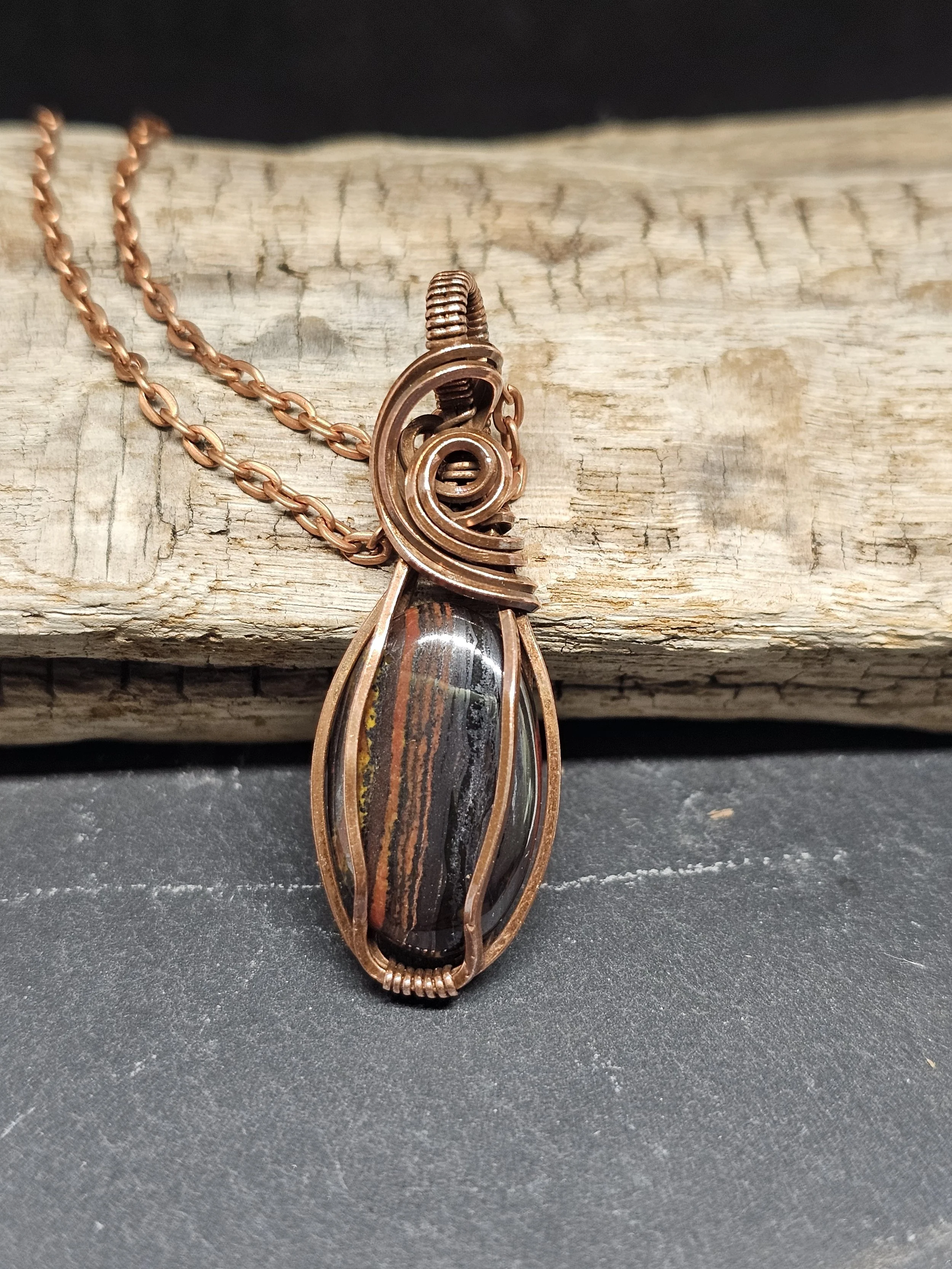 Discover the bold beauty of our Tiger Iron Copper Pendant, handcrafted with passion and precision. Tiger Iron, a powerful blend of tiger's eye, jasper, and hematite, is known for its grounding energy and strength-enhancing properties. This stone is said to boost confidence, courage, and focus, making it perfect for anyone facing challenges or seeking clarity. Paired with the warm glow of copper, which amplifies healing energies and promotes balance, this pendant is more than just jewelry—it's a talisman for empowerment. Wear it daily to harness protection, vitality, and unwavering determination in style.