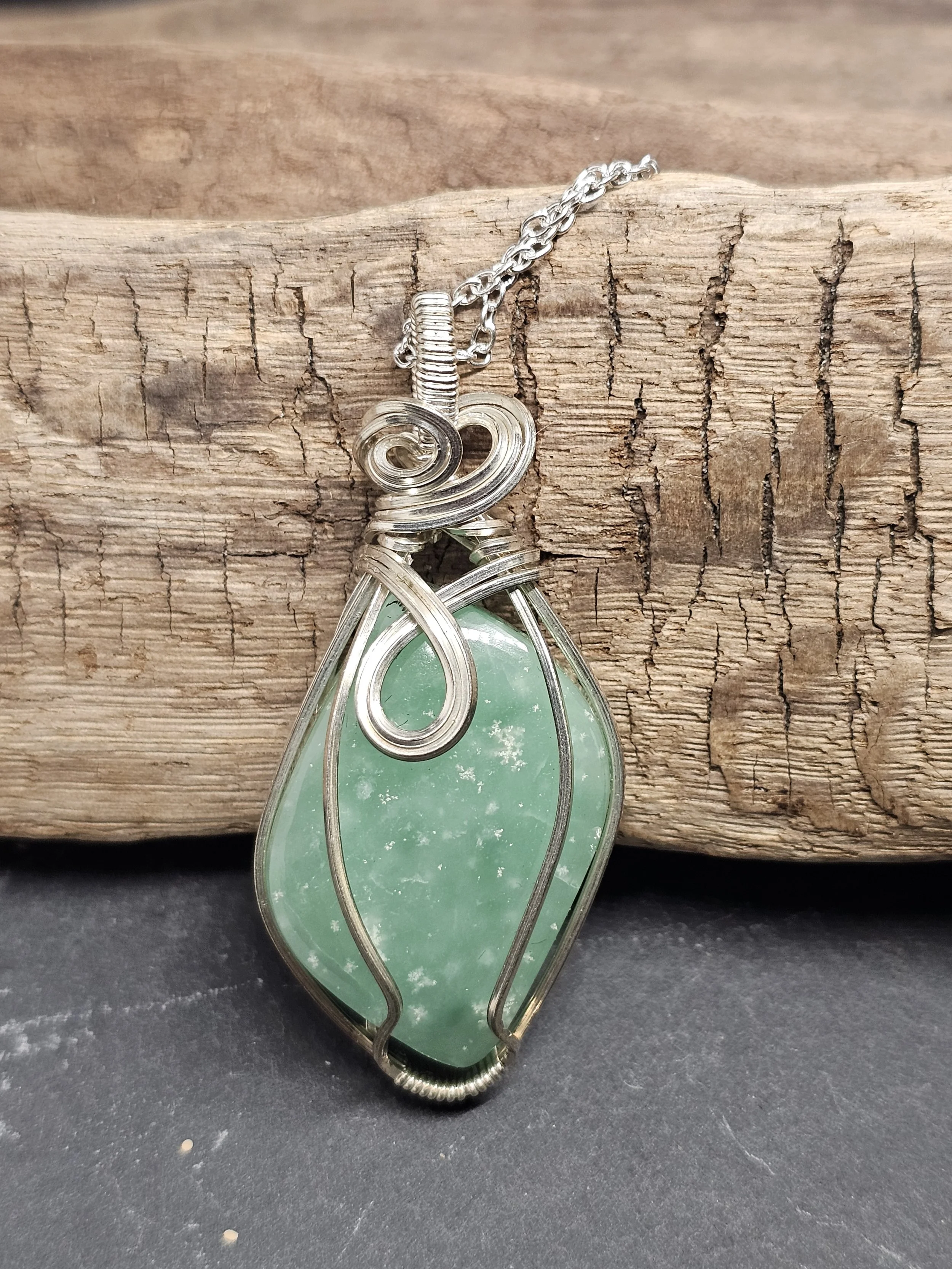 Meet the Hemimorphite Silver Pendant, made from shiny, strong Argentium silver. It features a unique Hemimorphite stone, known for its bright blue-green color and healing vibes.