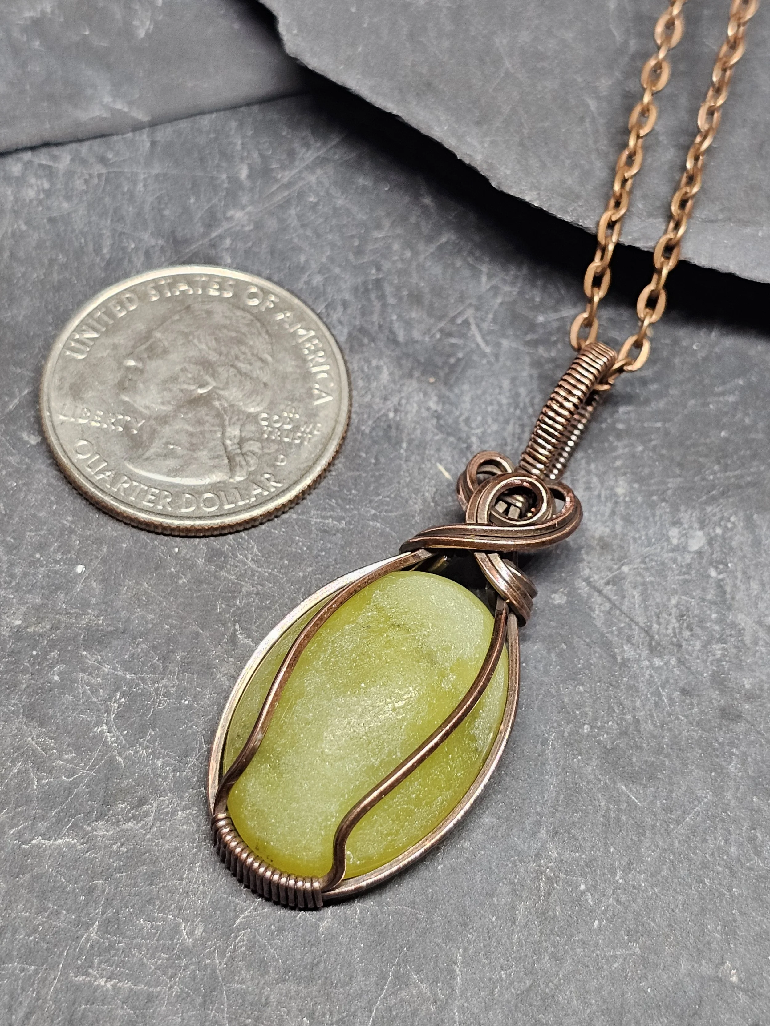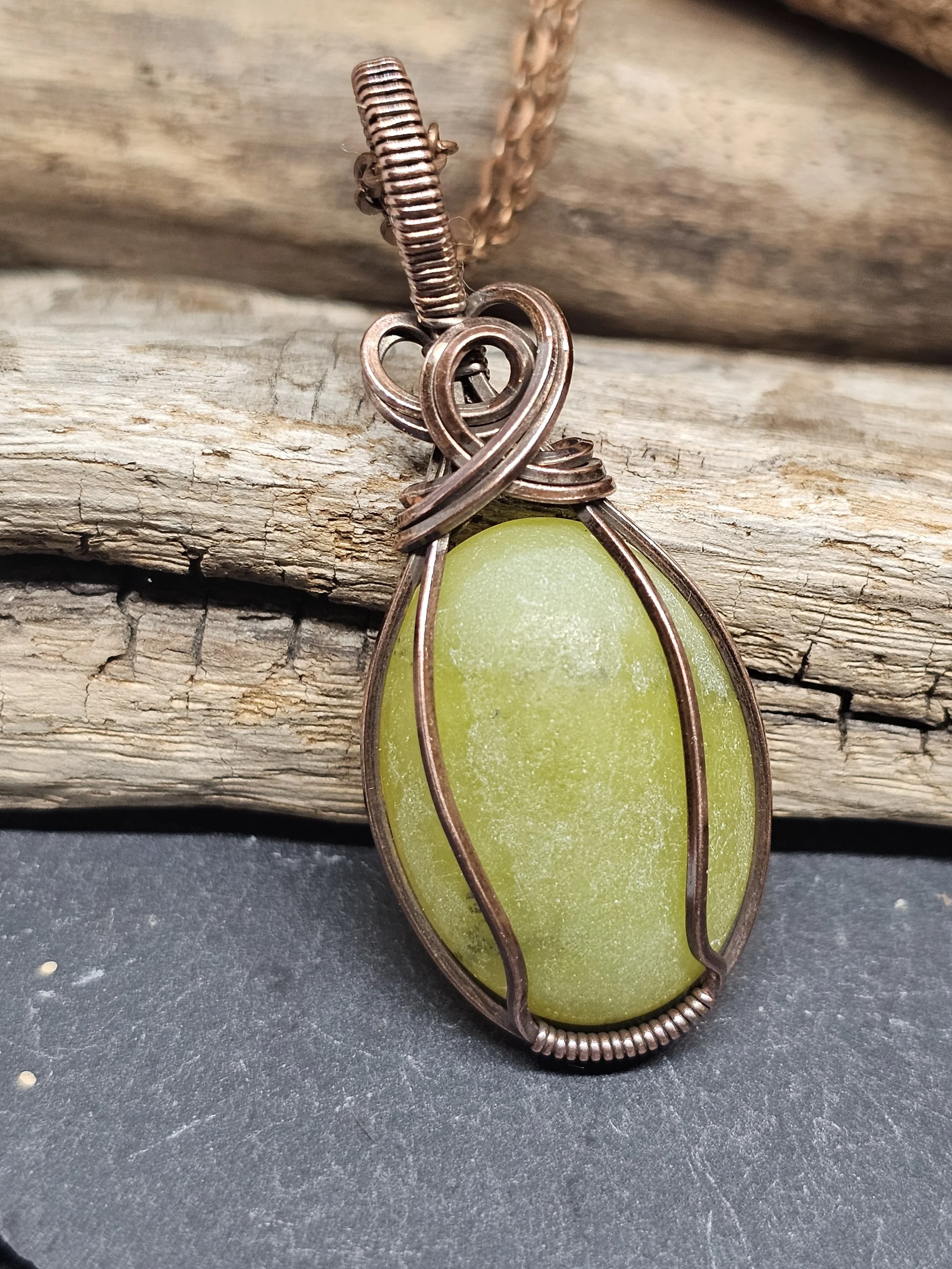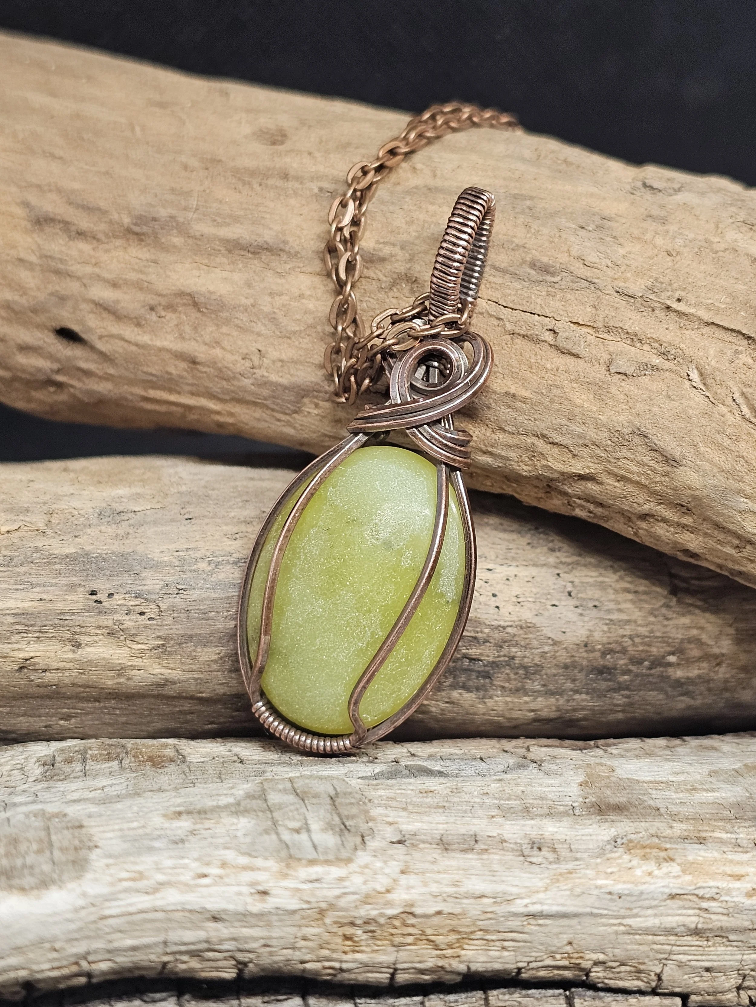 Discover the soothing beauty of our Green Calcite Copper Pendant, handcrafted with care by Sarah K Peterson. Green Calcite, known for its gentle energy, is believed to promote emotional healing and balance. This crystal’s calming green hues symbolize renewal and growth, making it a perfect stone for clearing negative emotions and encouraging positive transformation. Paired with warm, earthy copper wire, which enhances the stone’s natural properties and aids in energy conduction, this pendant is both a stylish accessory and a meaningful talisman. Wear it close to your heart to invite harmony and fresh beginnings into your life.