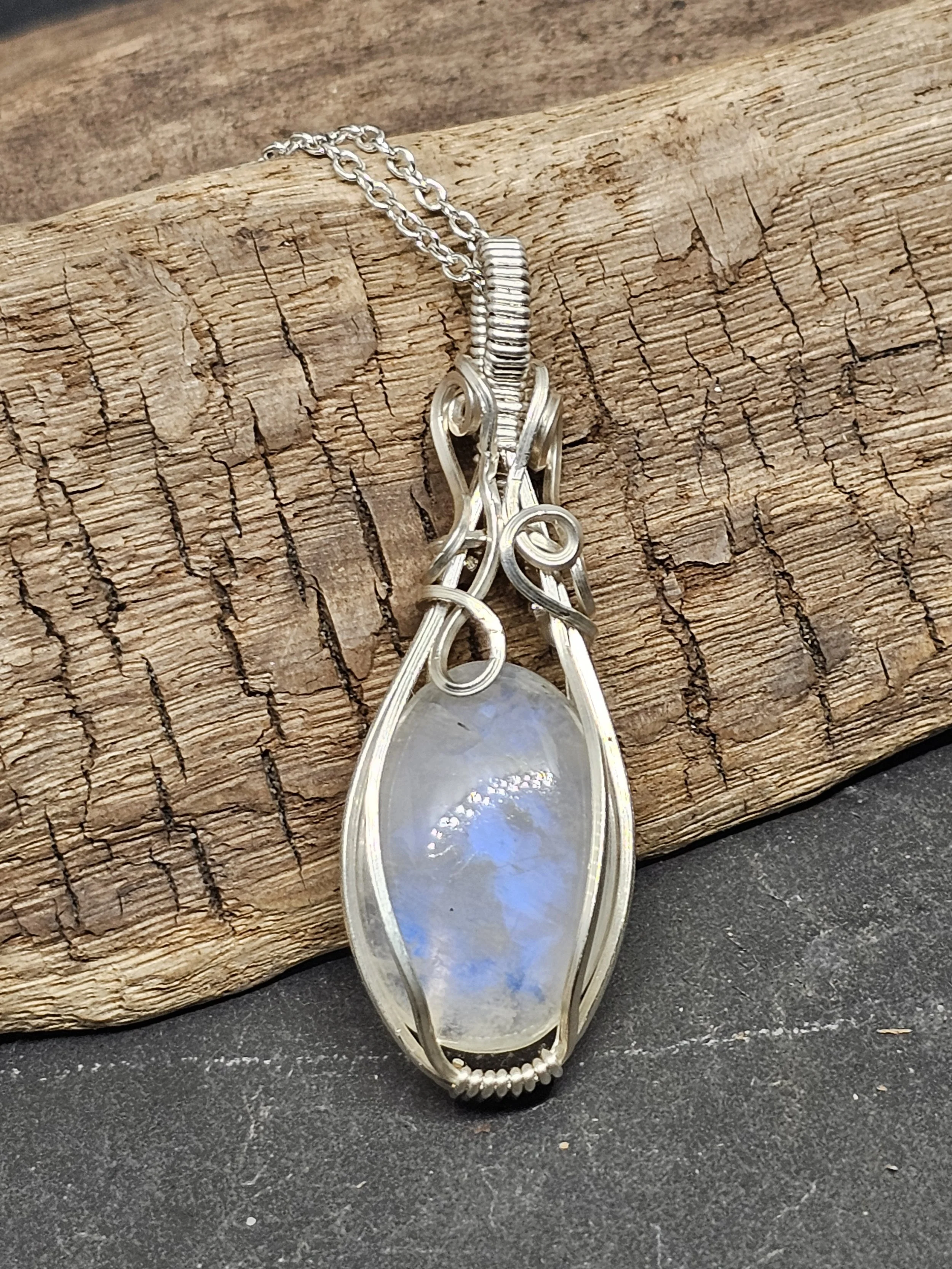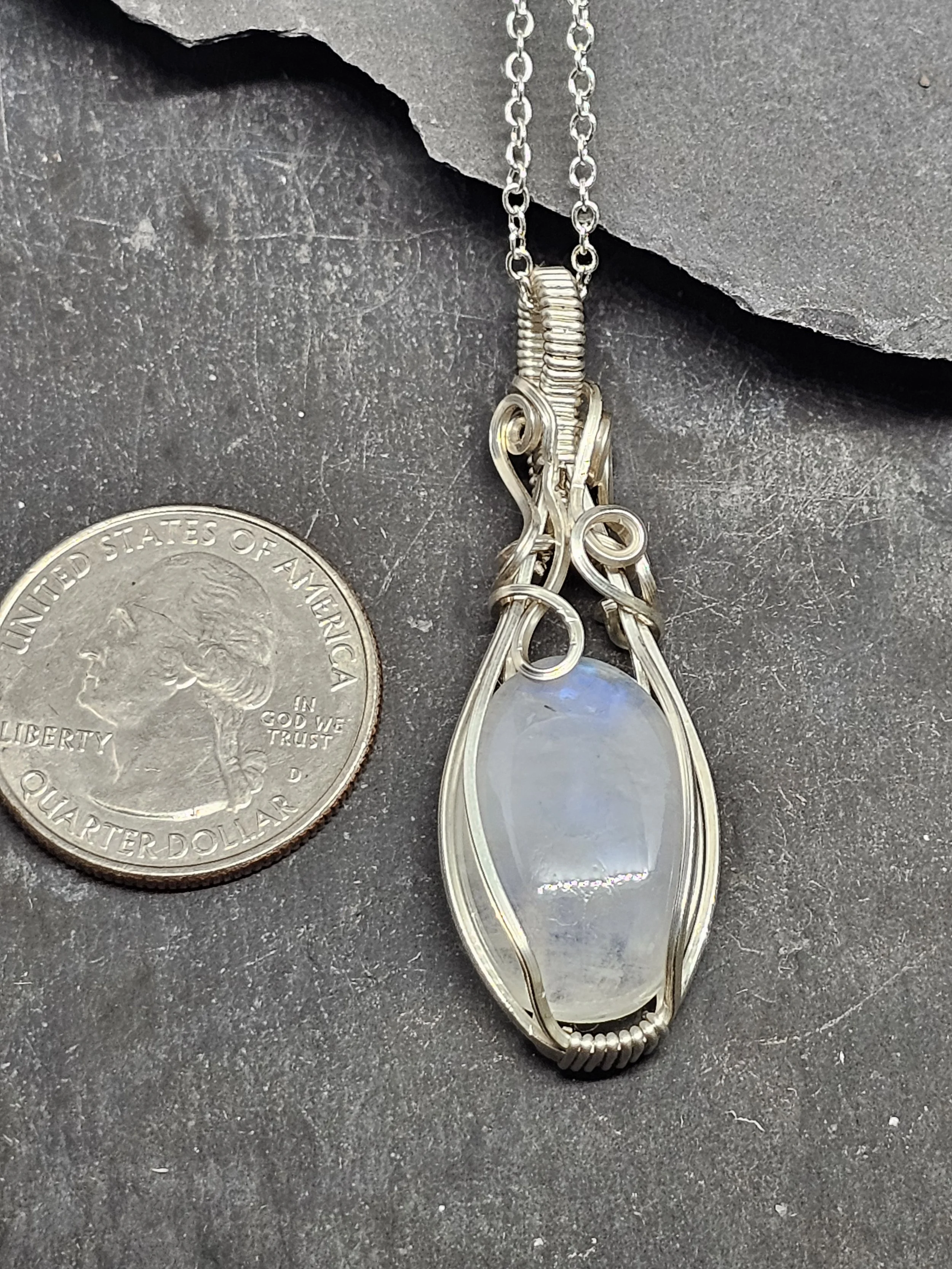 Discover the beauty of our handcrafted oval Rainbow Moonstone pendant, set in shiny Argentium silver. This pendant isn't just jewelry—it's a special charm.