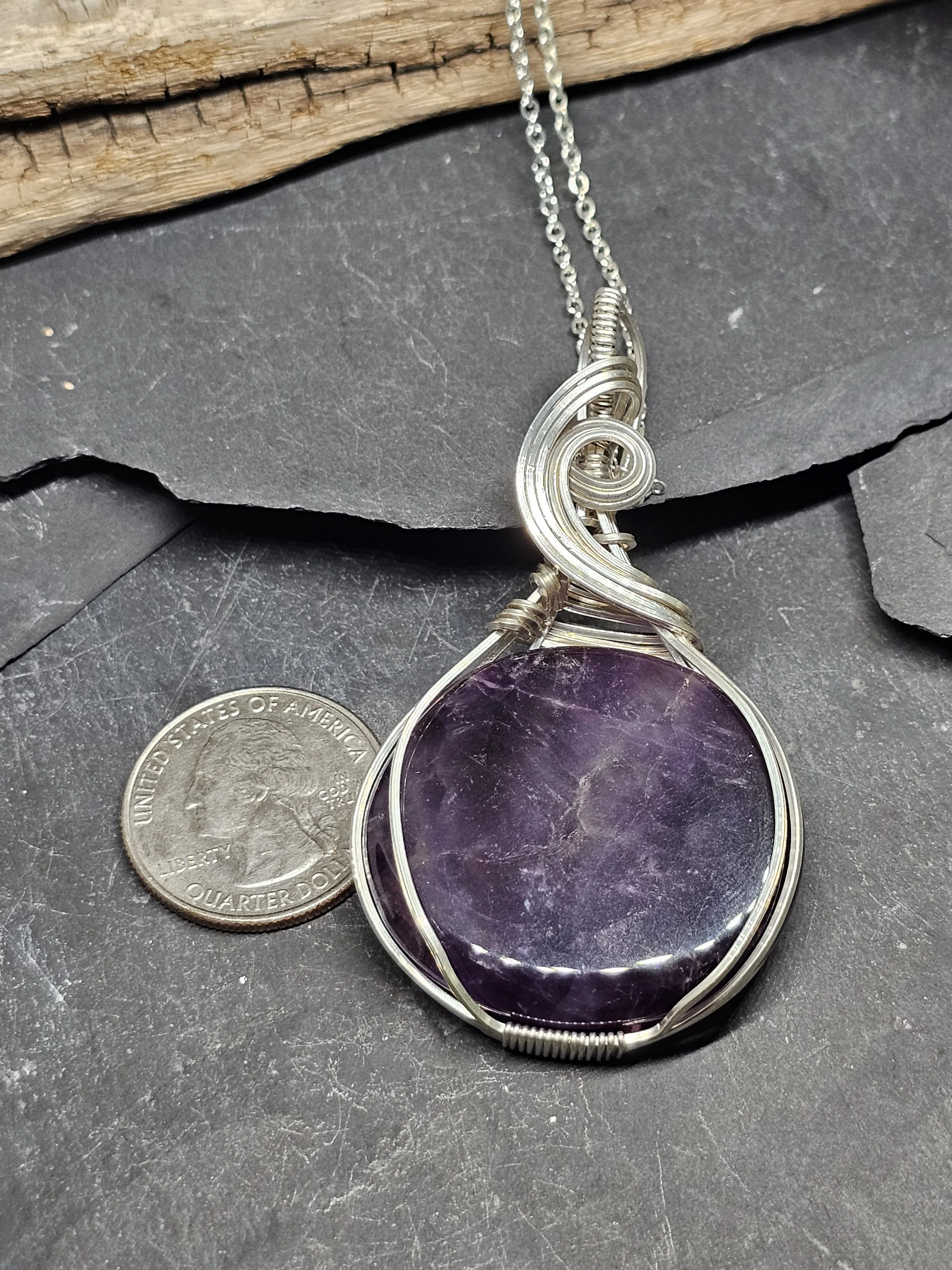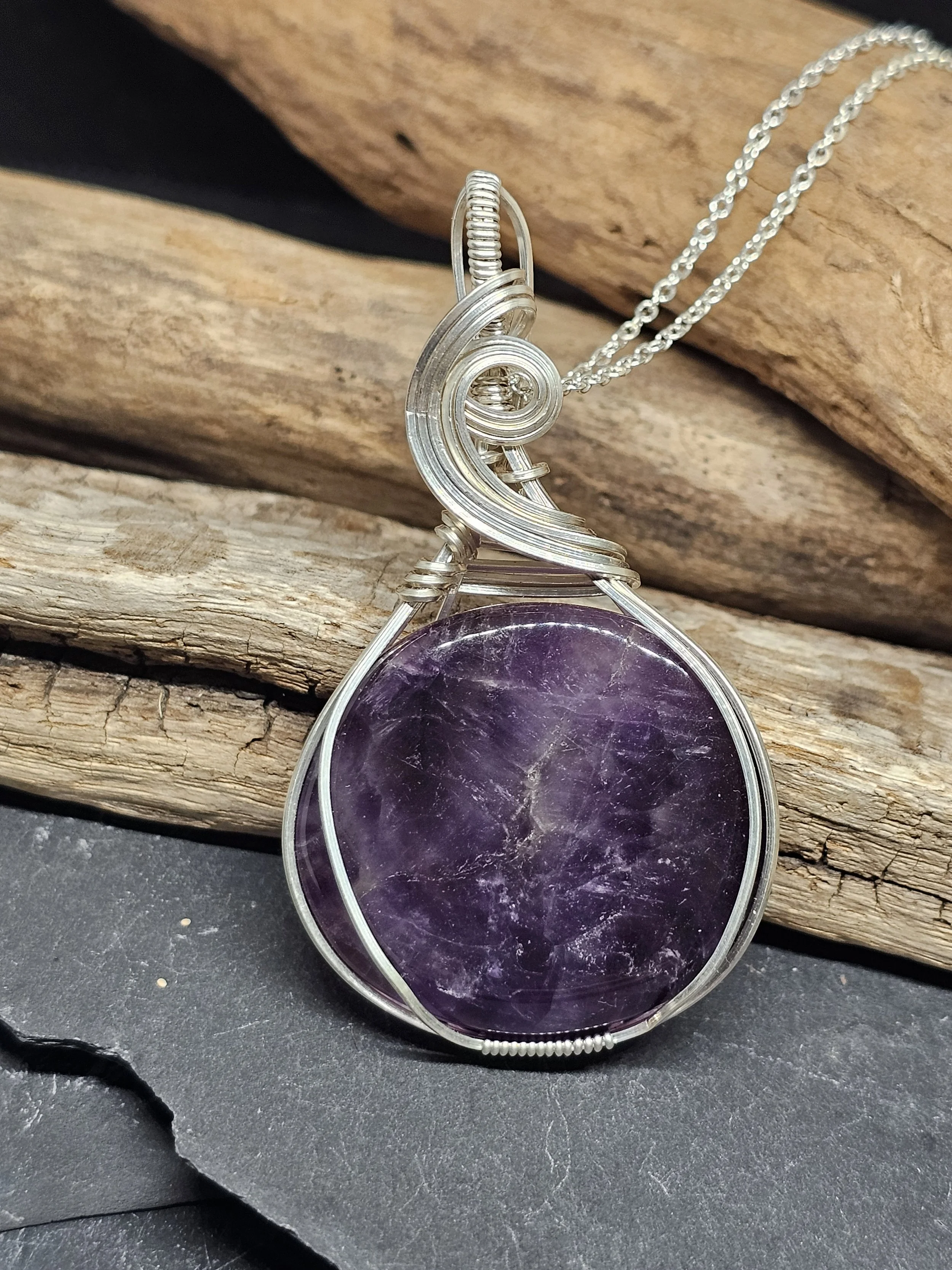 Discover the serene beauty of our amethyst pendant, expertly crafted with luminous argentium silver. Known as the stone of peace and clarity, amethyst has been treasured for centuries for its calming energy and ability to enhance intuition. This gorgeous pendant not only elevates any outfit but also carries the gentle strength of amethyst’s protective and healing properties, making it a meaningful addition to your jewelry collection. Handcrafted with care by Sarah K Peterson, it’s more than just a piece—it’s a wear-with-purpose treasure.