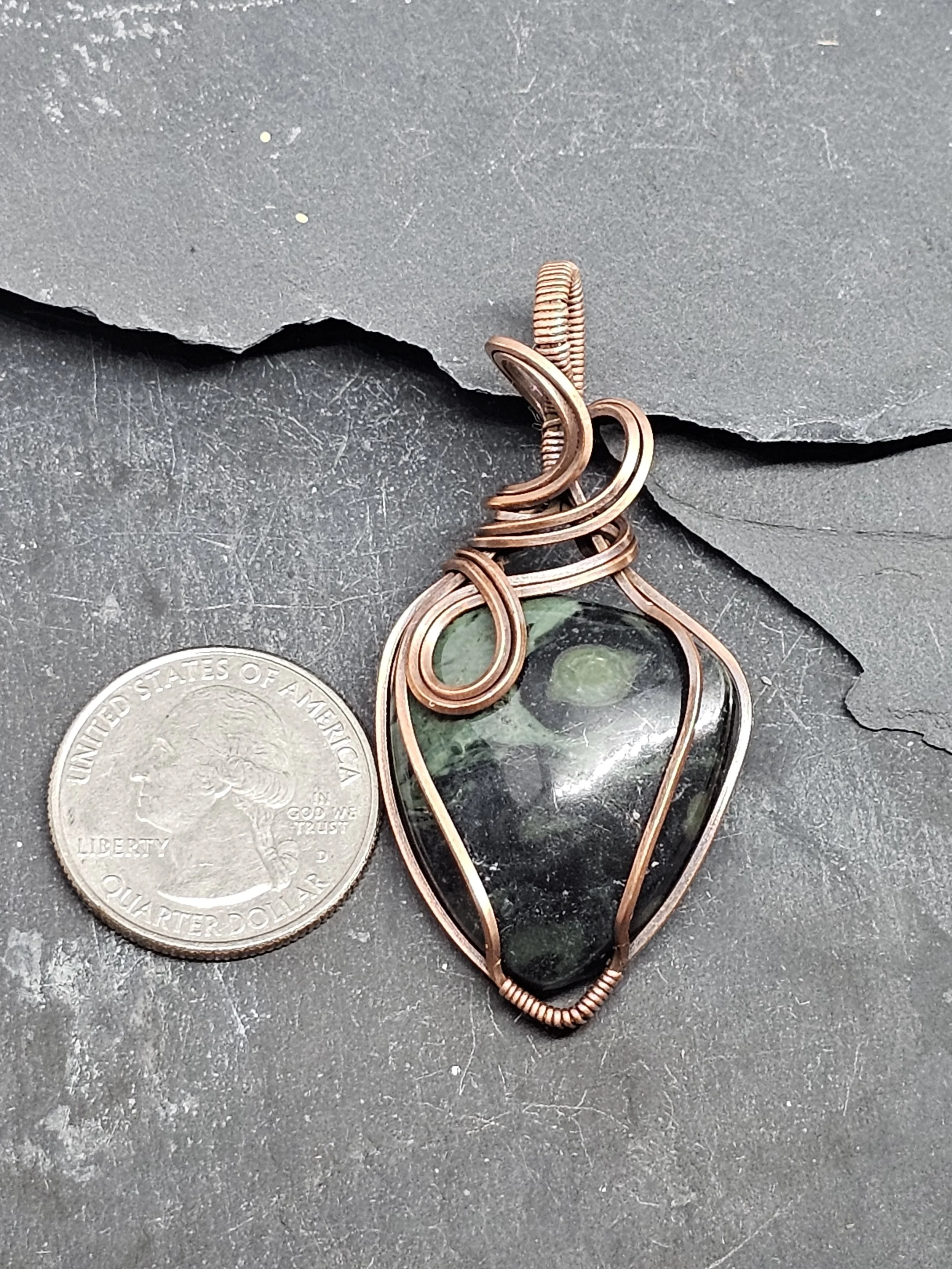 Discover the enchanting beauty of the Kabamba Jasper Pendant, a true treasure hand-wrapped with care by Curly Top Jewelry Design. Known as the "Stone of Stability," Kabamba Jasper combines earthy tones with unique patterns that symbolize balance and grounding. This pendant is not only a stunning accessory but also a powerful talisman believed to promote emotional healing, endurance, and harmony. Wear it close to your heart to invite peace and strength into your everyday life—an elegant reminder that stability and calm are always within reach. Perfect for anyone seeking both style and soulful energy.