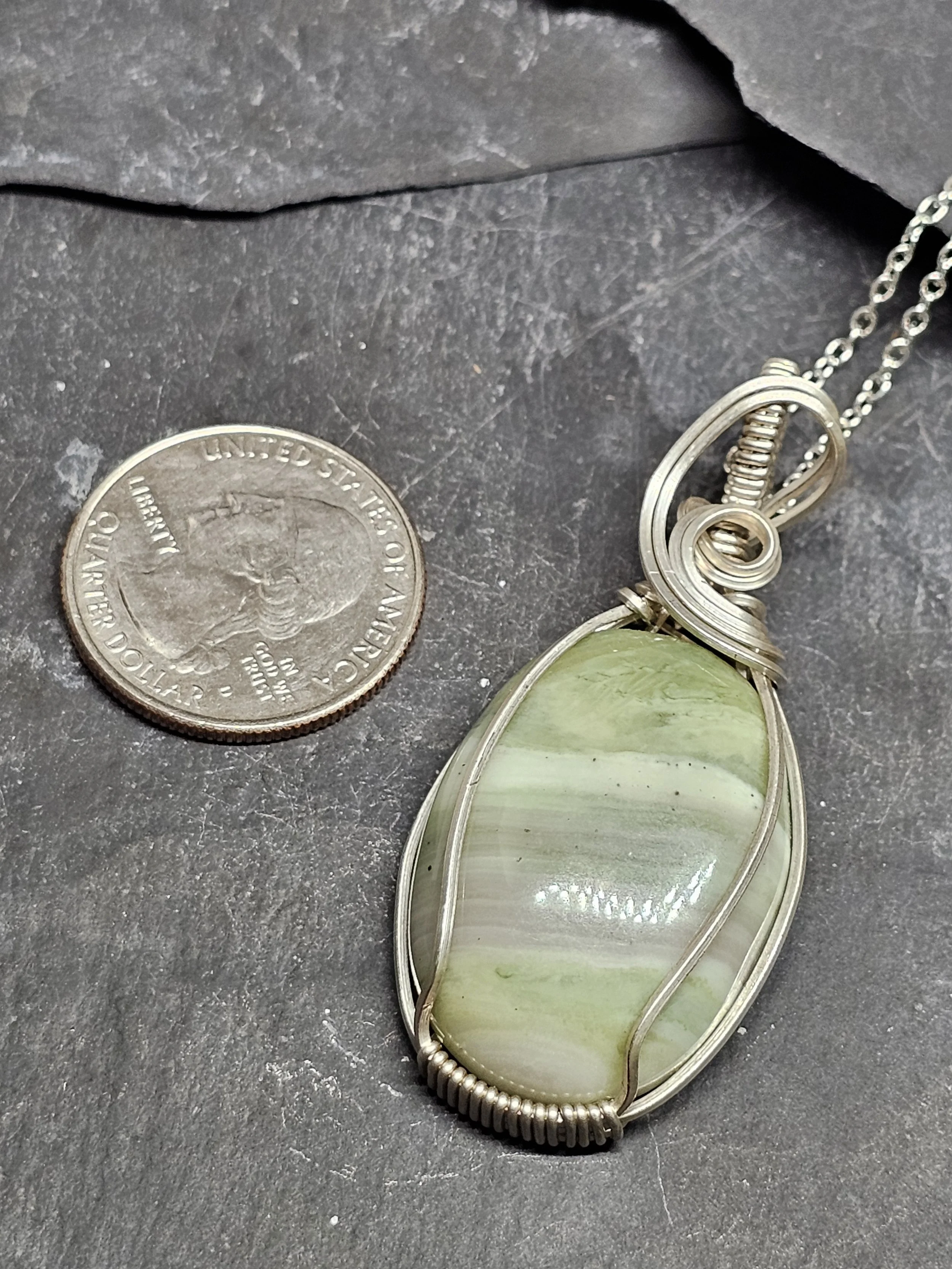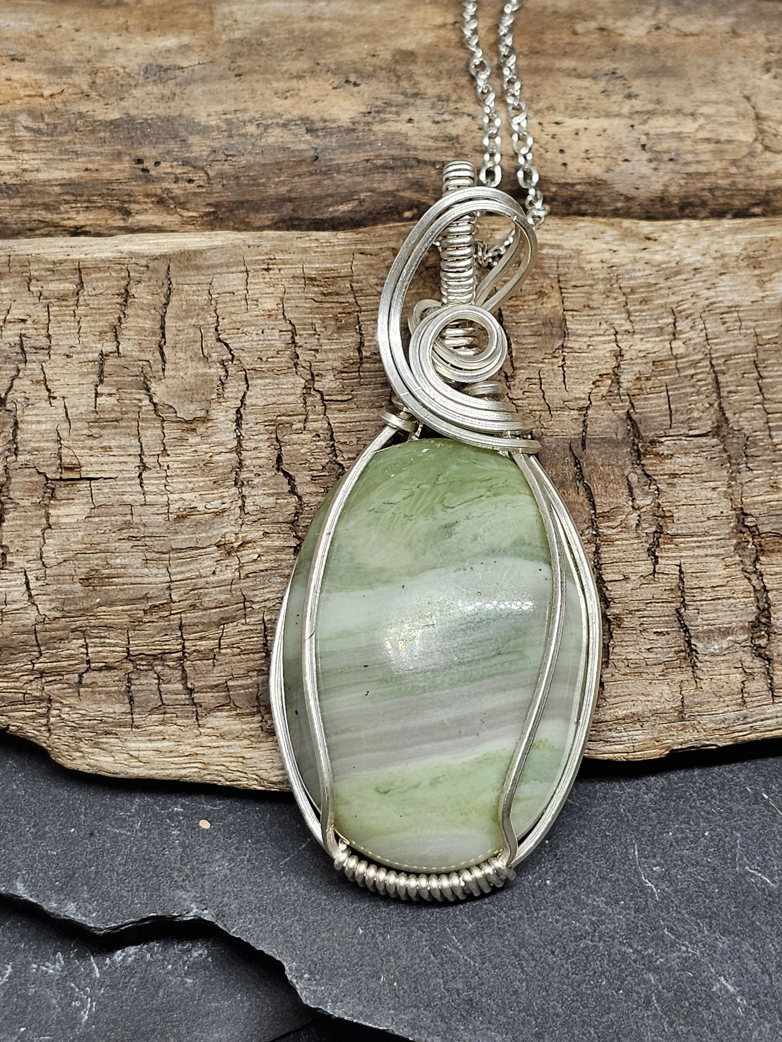 Discover the elegance of our handcrafted pendant featuring stunning banded agate, expertly wrapped in radiant argentium silver. Each piece showcases the natural beauty of the agate’s unique layered patterns, making every pendant a one-of-a-kind treasure. Argentium silver not only offers a brilliant shine but also resists tarnish, ensuring your jewelry stays beautiful over time. Perfect for adding a touch of earthy sophistication to any outfit, this pendant reflects both artisan skill and timeless style. Elevate your accessory collection with a piece that embodies both nature’s artistry and expert craftsmanship.