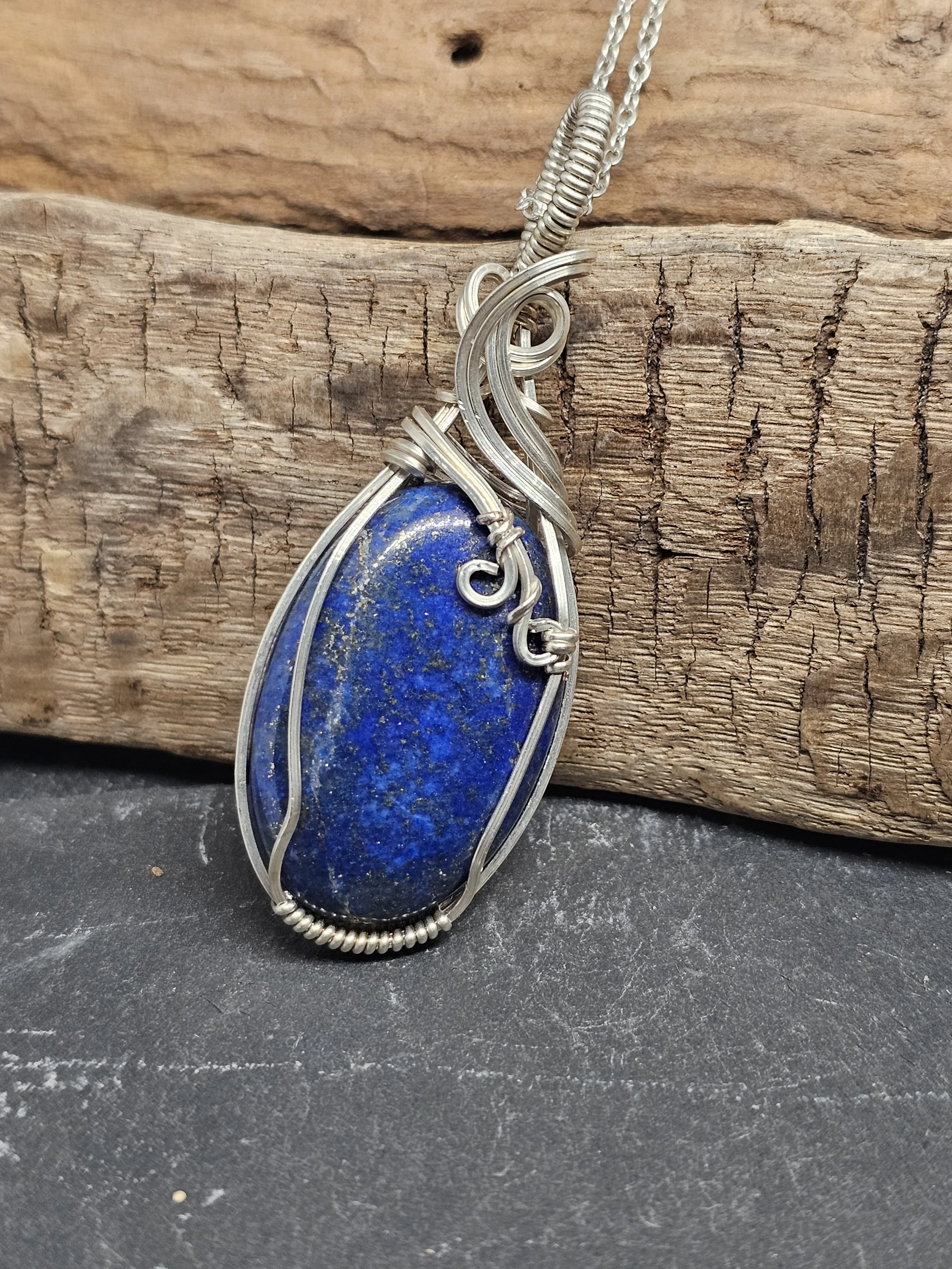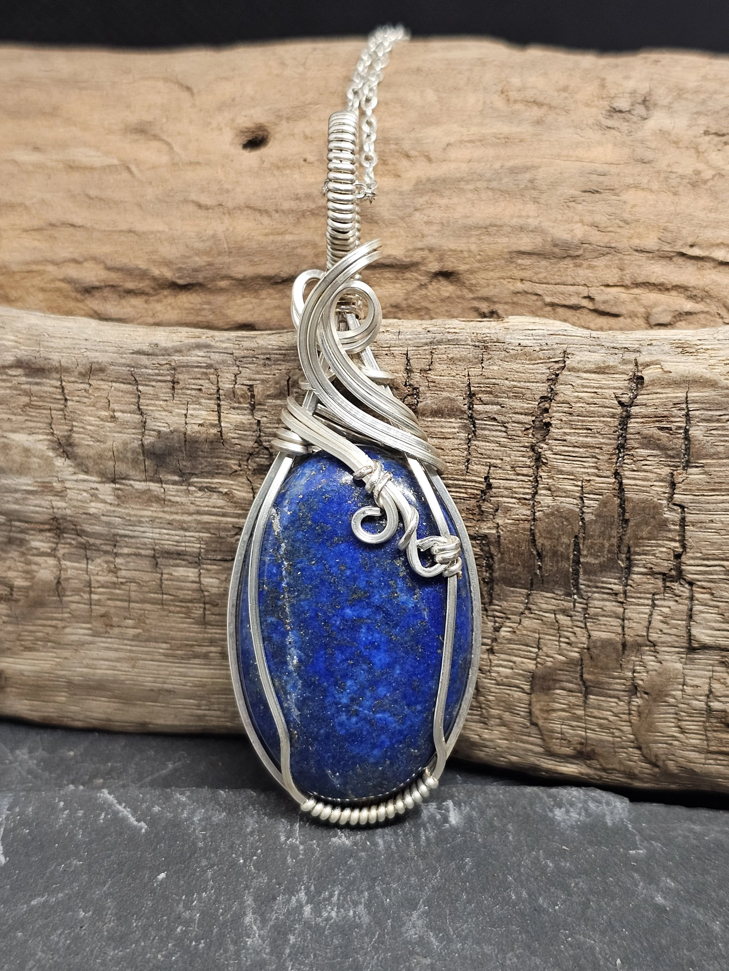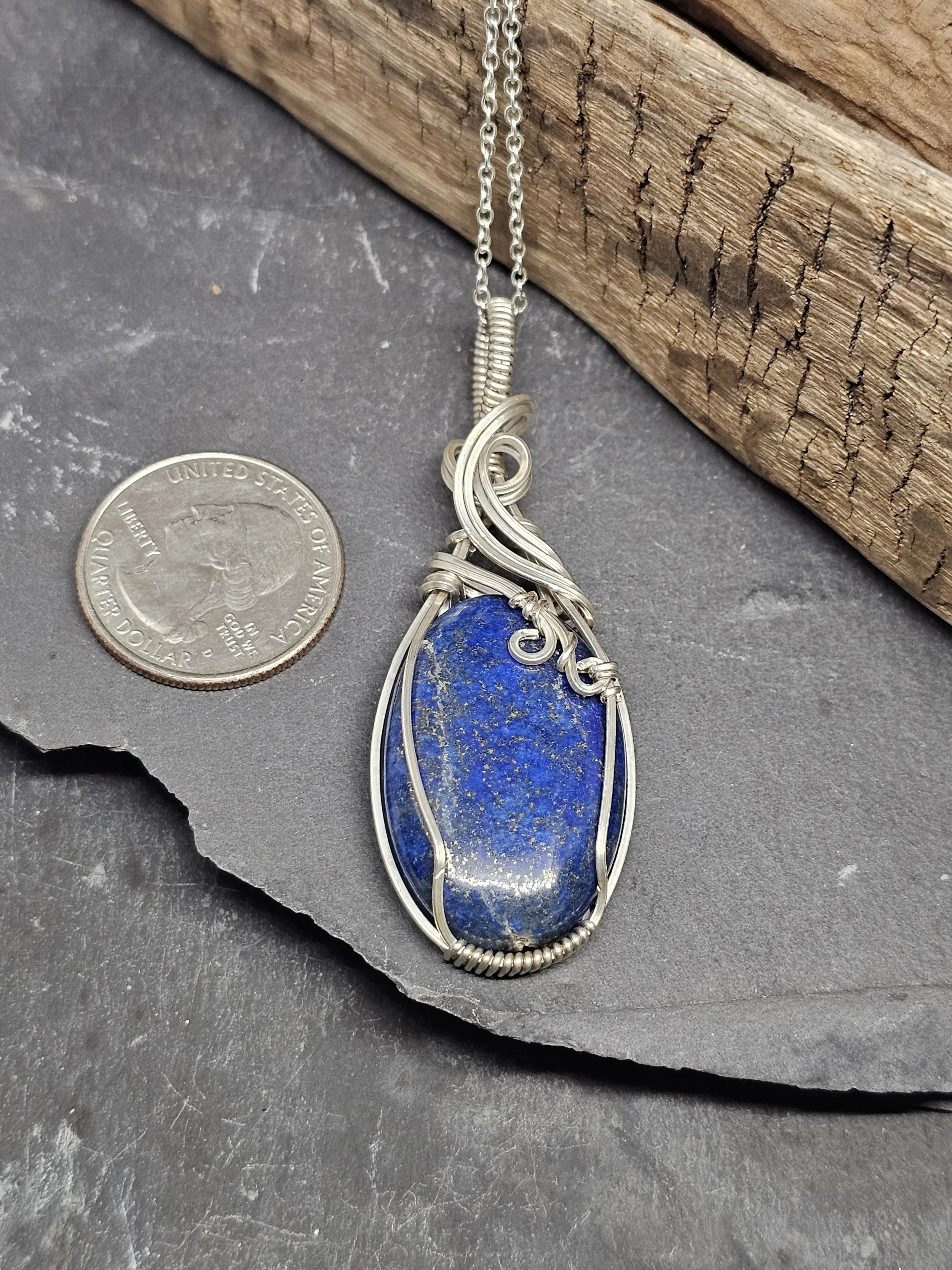 Discover the beauty of our Lapis Lazuli Silver Pendant, handcrafted with durable, tarnish-resistant Argentium silver. The deep blue Lapis Lazuli stone, speckled with gold, looks like a starry night and symbolizes wisdom, truth, and peace. This pendant adds elegance to any outfit and carries a rich history. Handmade with care, it’s designed to shine and last.